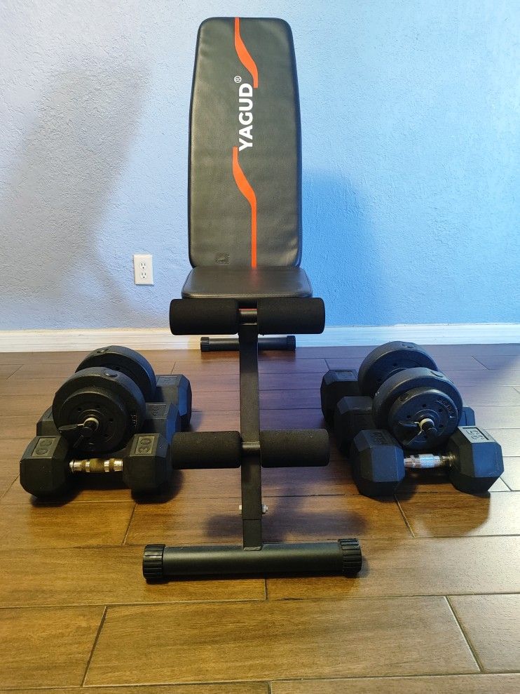 Home Gym Equipment comes with a gym bench and 8 dumbbells I am selling everything, I will not part out the equipment, it all comes as a bundle The Dumbbells weights are -(2) 50 Pound dumbbells -(2) 40 Pound dumbbells -(1) 35 Pound dumbbells -(1) 30 Pound dumbbells -(2) 20 Pound dumbbells I am interested in trading for computer PC stuff, otherwise, CASH ONLY Any questions are welcome PICKUP ONLY