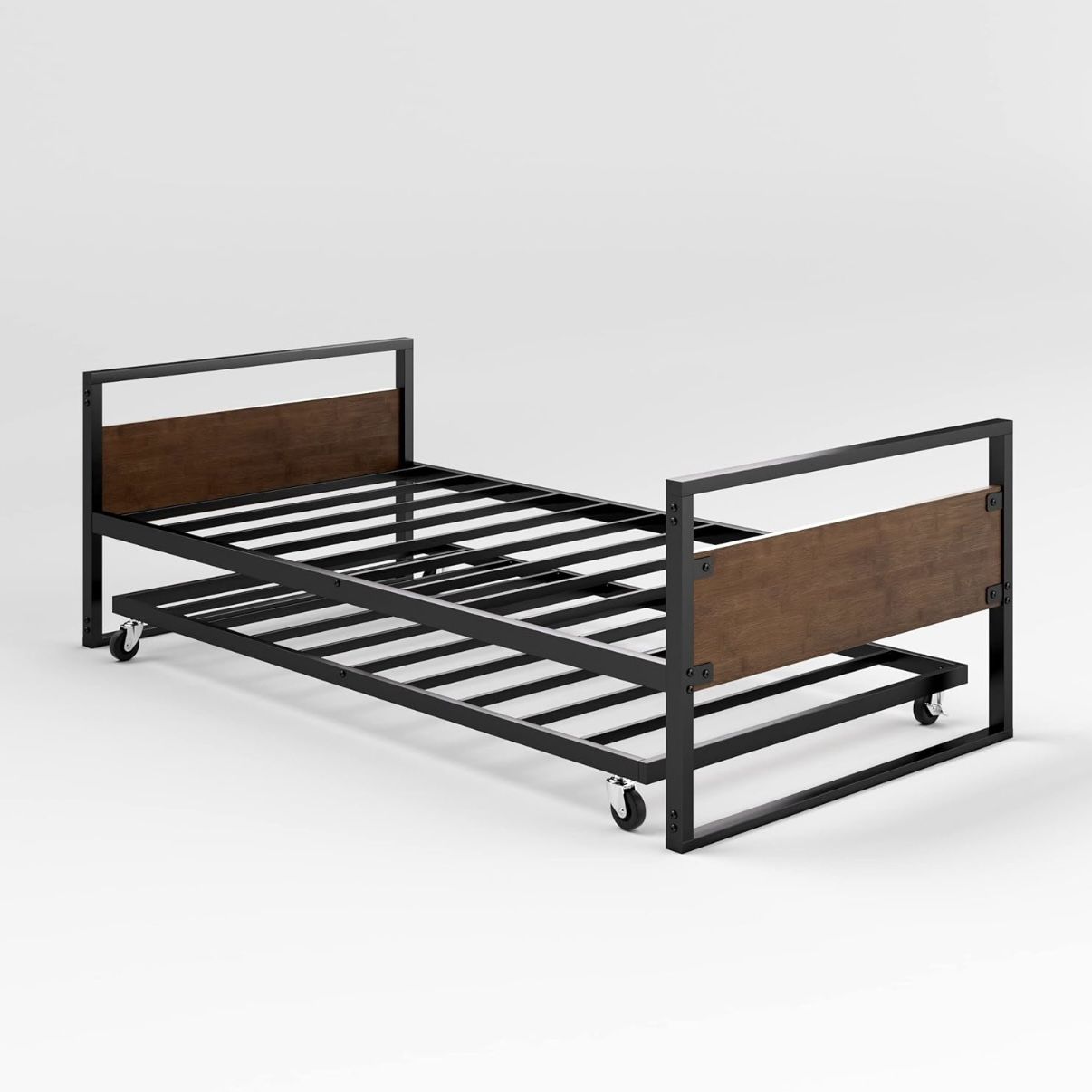 Bamboo and Steel Daybed with Trundle. Mattress Foundation with Steel Slat Support. Twin size. Each twin size bed supports a maximum weight capacity of 350 lbs. - Original item list price: $207 before tax - Product Dimensions: 78"L x 39"W x 25.8"H - Purchased in 2023
