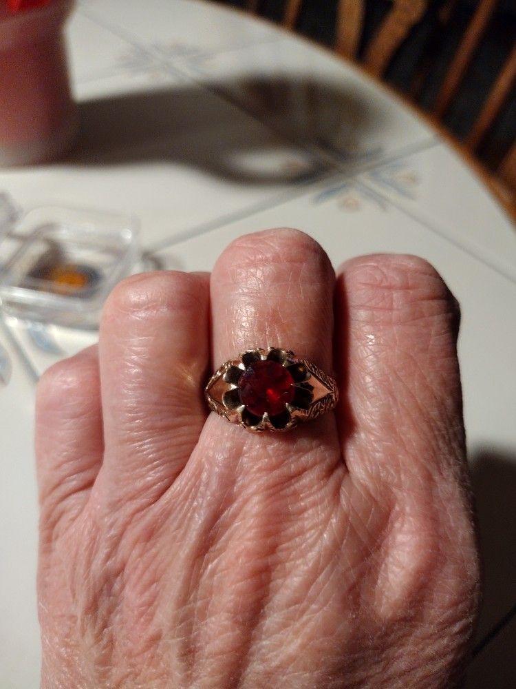 Beautiful piece large stone over 1 k in an antique setting, for man.or woman can be sized. In a size 10. And 6.64 grams
