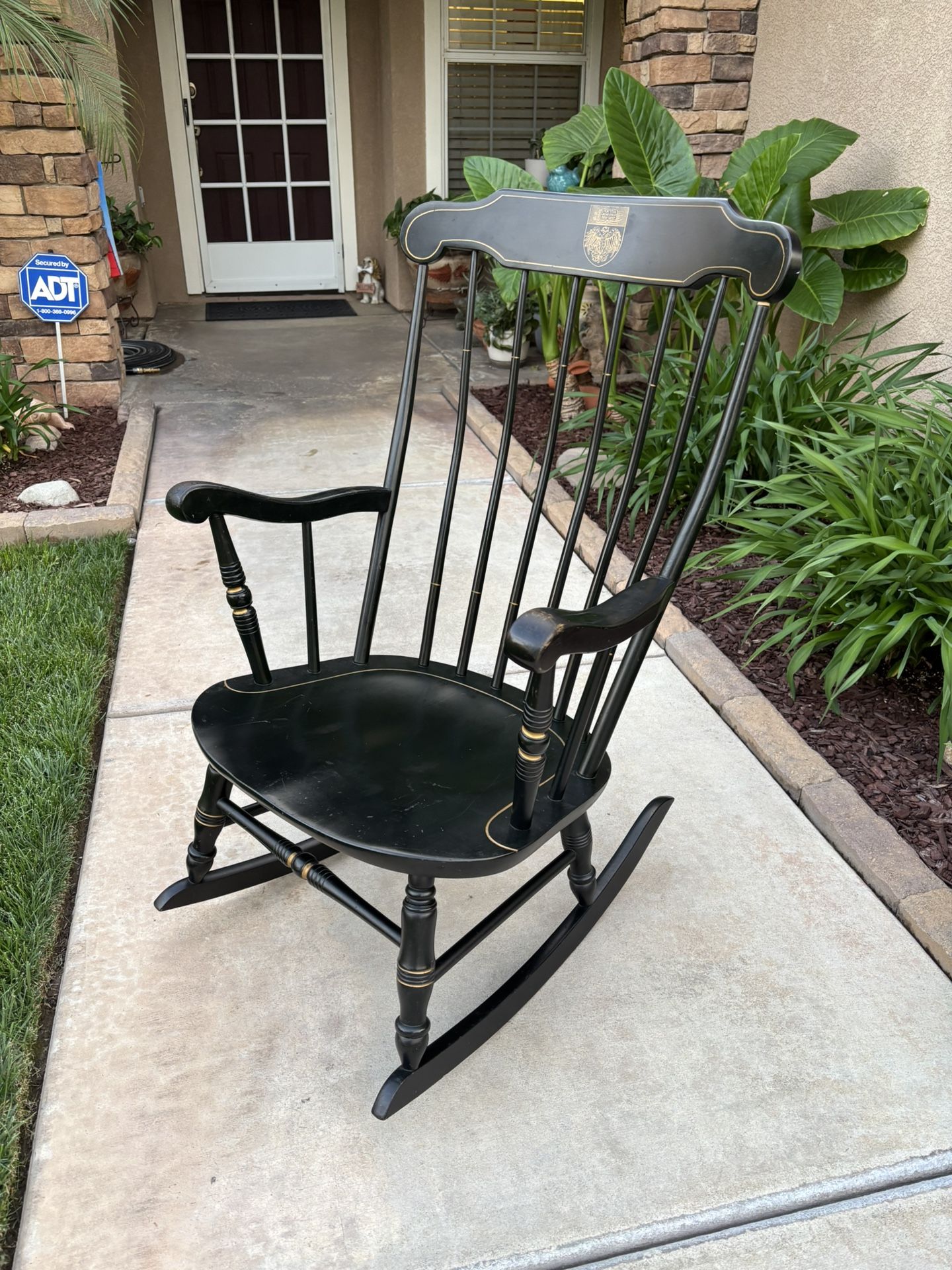 VINTAGE “BENT & BROS” BLACK WINDSOR COLONIAL ROCKING CHAIR (25”W X 19”D X 38”H)