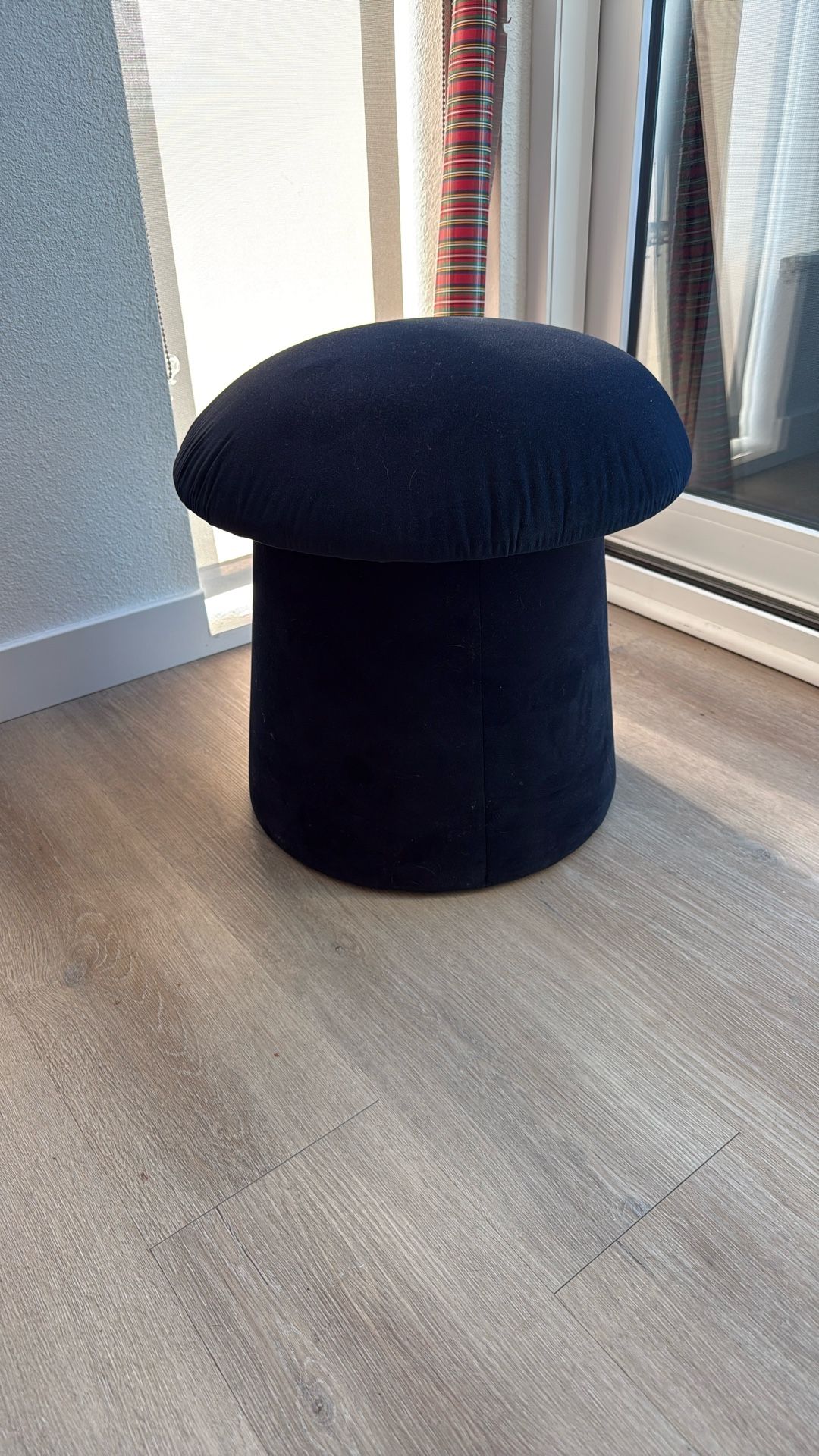 Blue mushroom shape ottoman. In good condition.