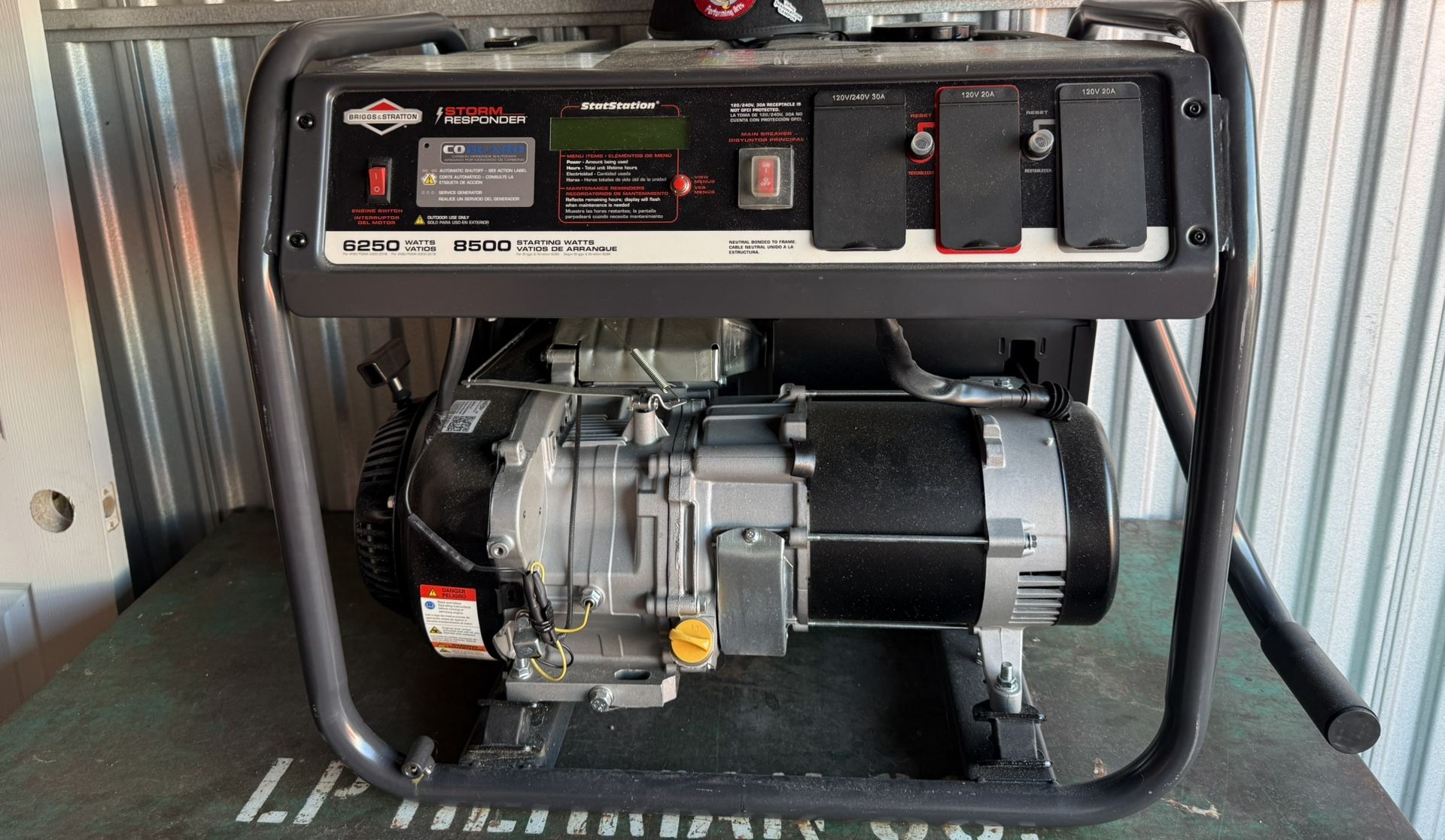 Selling a well-maintained Briggs & Stratton Storm Responder portable generator. This unit is powerful, reliable, and perfect for home backup, job sites, RV use, or emergency situations. Key Features: • 6250 running watts / 8500 starting watts – plenty of power to run essential home appliances, tools, or equipment. • Briggs & Stratton engine – known for durability and long life. • Multiple outlets, including: • 120V/240V 30A • 120V 20A outlets • 120V 30A outlet • CO Guard® technology – built-in carbon monoxide shutdown for added safety. • Steel frame & sturdy wheels for easy transport and stability. • Electric start switch for simple startup. • Low-hours unit (based on visual inspection—runs strong).