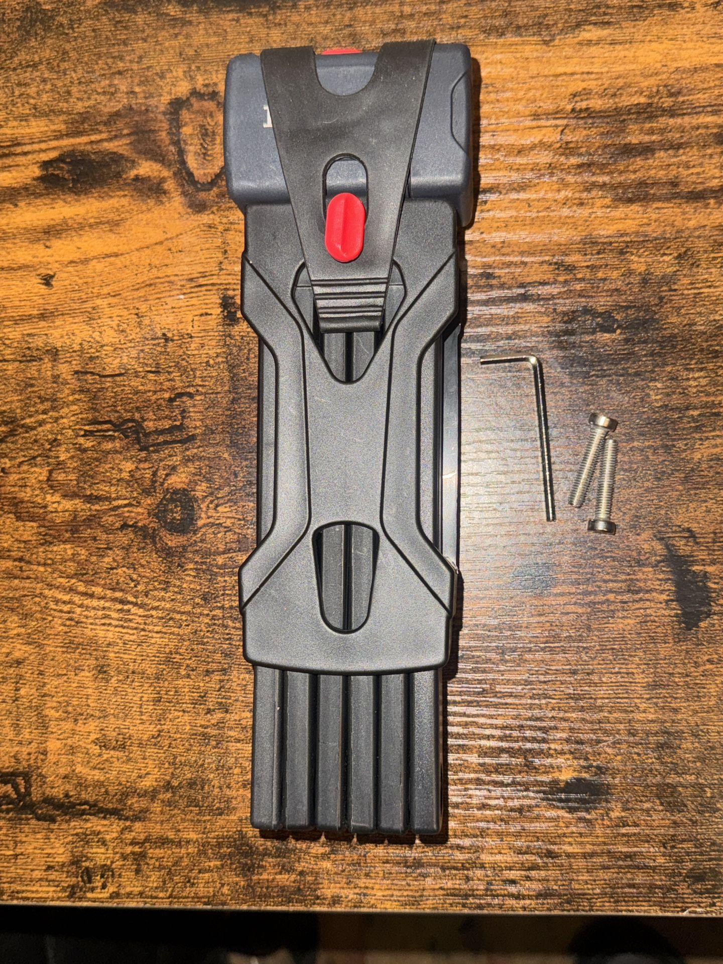 Highly durable and secure folding lock with holster that mounts into the bottle cage area on the frame. Perfect for bikes and scooters of all makes and models, standard and electric. Virtually cut proof, saw proof, melt proof and pry proof, this lock will keep thieves moving onto an easier target with a less secure lock. Mounting hardware and 3 keys included. Retail Price: $80 Your Price: $50