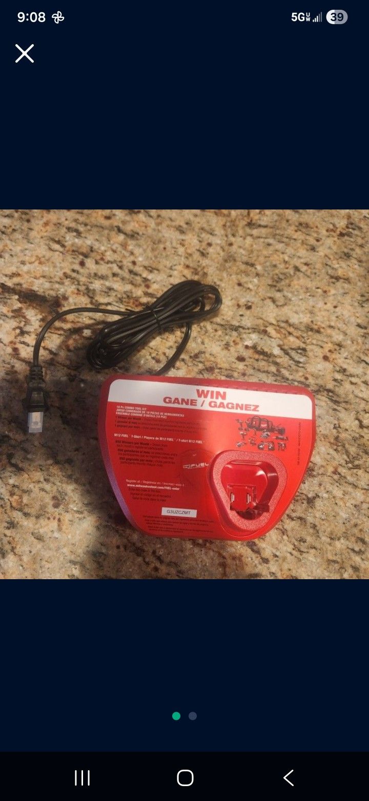 Brand new Milwaukee M12 charger. Never used. Works with all M12 batteries. $10.