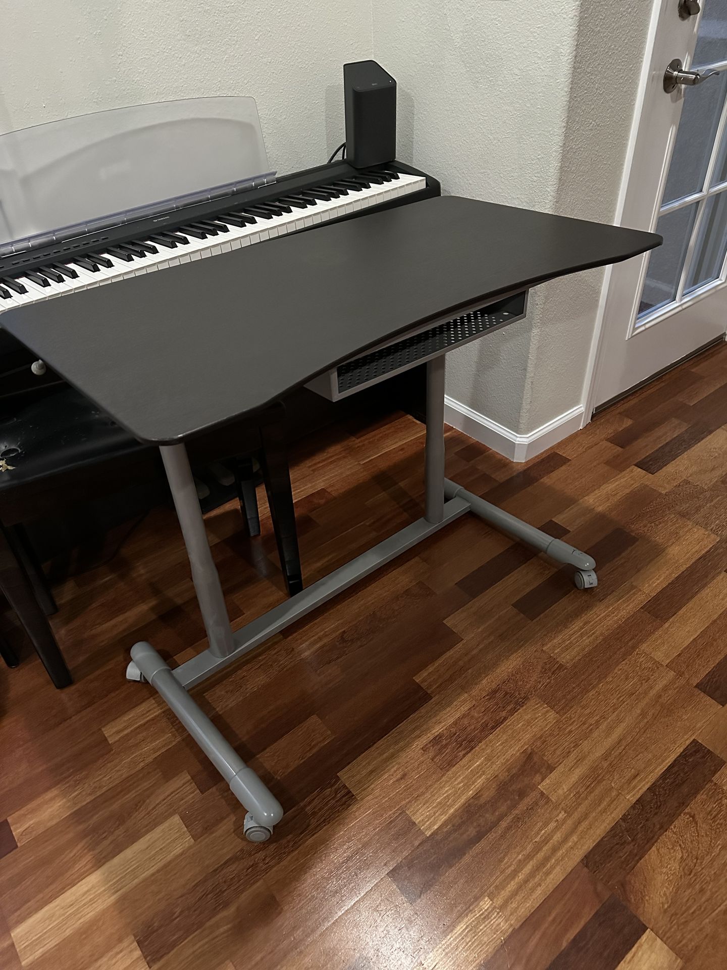 Manual standing desk in excellent condition Has a lever that you can use to adjust desk height Dimensions are roughly 24x36 inches
