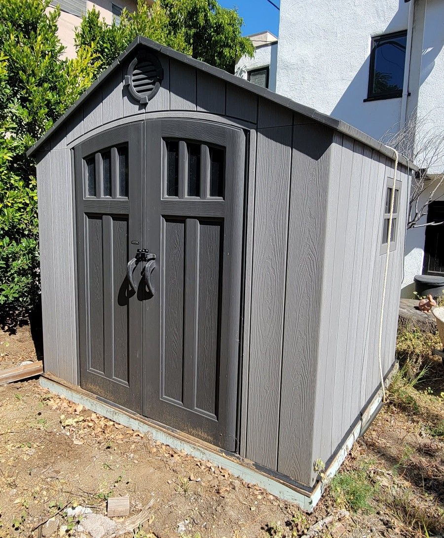 You will need to disassemble. ‐----- Double Wall System (DWS) with Steel Reinforcement Weather-Resistant and UV-Protected Panels Lockable Steel-Reinforced Doors Three Skylights for Natural Light Two Screened Air Vents Adjustable 90" Living Hinge Shelf Slip-Resistant HDPE Floor Dual-Wall Polyethylene with Horizontal Lap Siding Excellent Drainage Roof Design Made in the USA