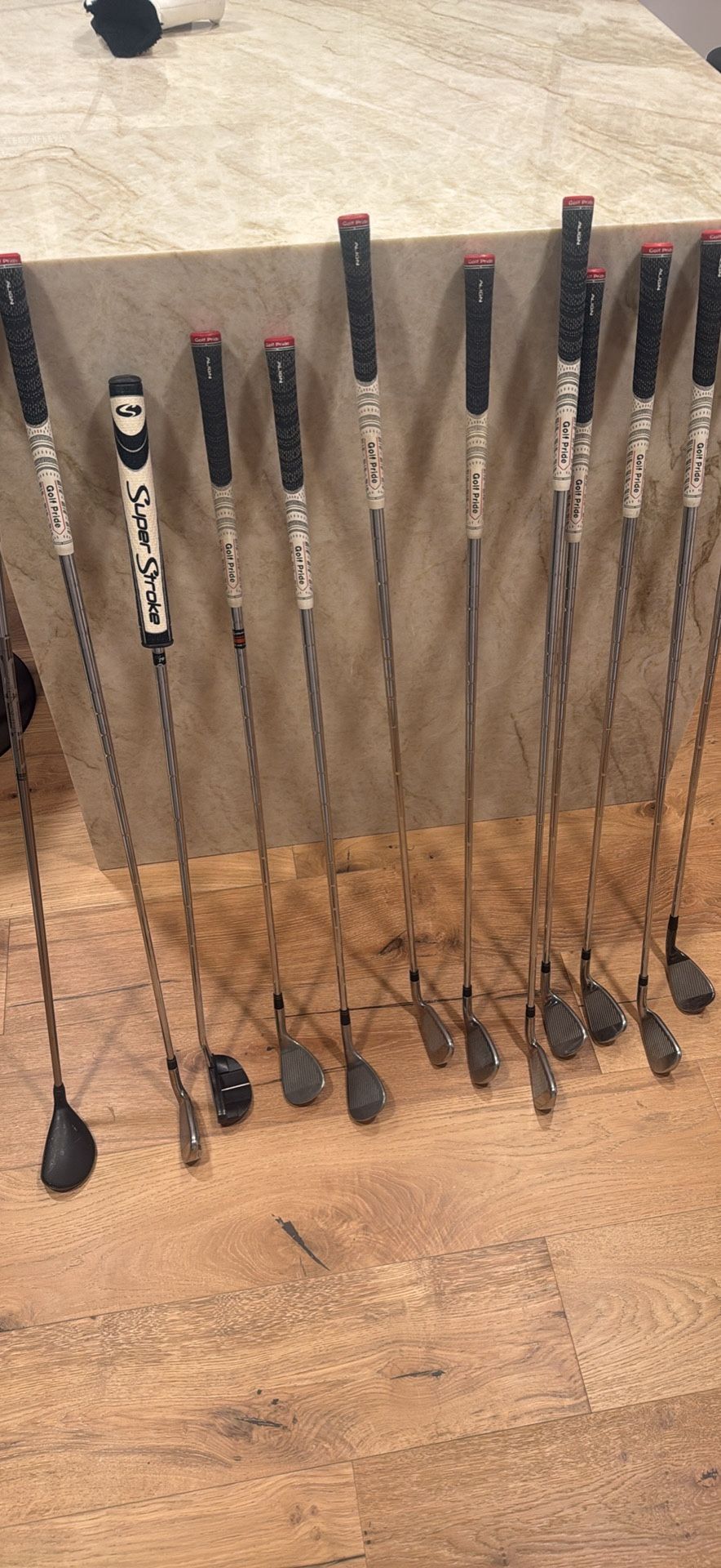 Selling my Taylormade golf clubs (complete bag minus driver). M2 irons (GW,PW,9,8,7,6,5,4) Taylormade zspin LW (60degrees) Taylormade ATV SW (54 degrees) Ping G425 3hybrid Putter TM770 These are lefty clubs for taller golfers 6’1 and up. Great deal selling as a set! Let me know if interested.