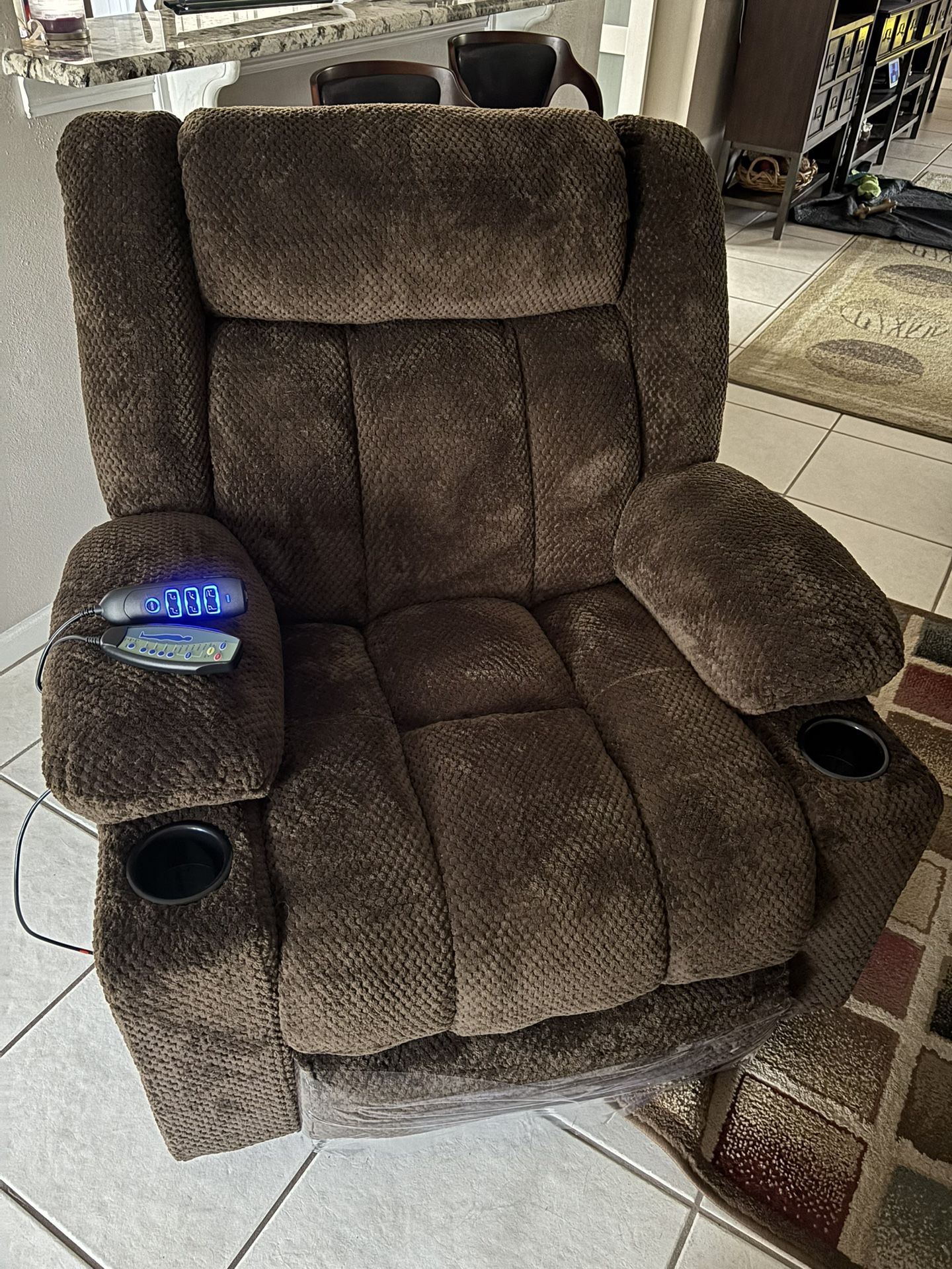 Edited-I assembled the chair to show how it looks and not just in the box. 12 pictures of all of its functions …NEW!! * 3 Motor Large Power Lift Chair for Big & Tall. *180° Lay Flat Lift Chair, Infinite Position, *Power Headrest, Heat & Vibration Massage - *Plush Flannel * 400lb weight capacity ***Specs are in the pictures.