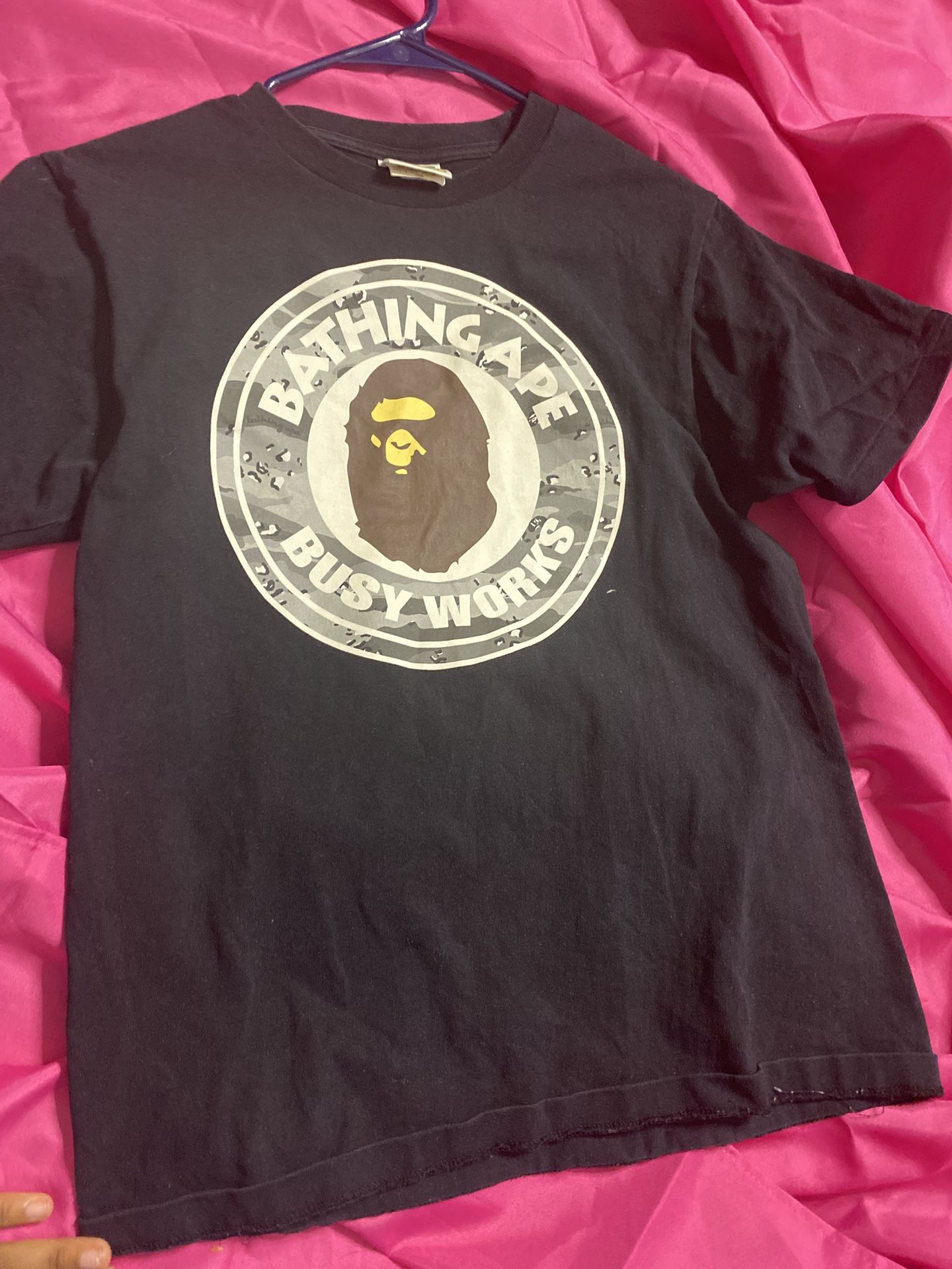 Selling a real A Bathing Ape Busy Works T-shirt in black! No rips, no stains, just normal light wear. Perfect for streetwear lovers who want a REAL BAPE piece without paying retail. Size (S) Color (black gray white brown n a dark yellow)
