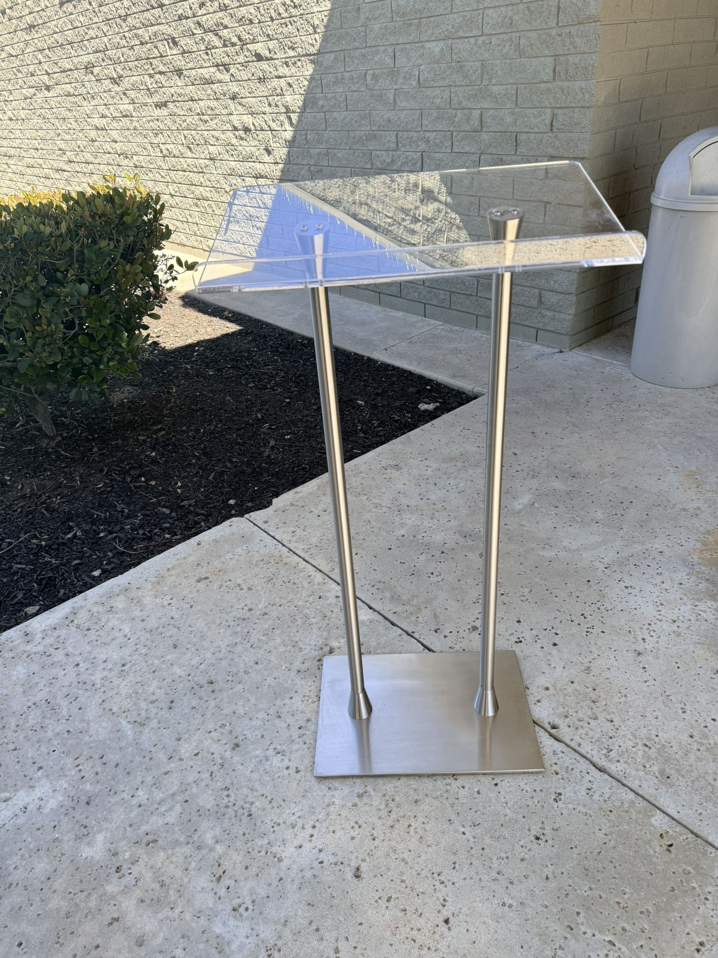 Lecture Acrylic Chrome Podium, 15 x24 x 42.1/2 “ - 45 1/2”