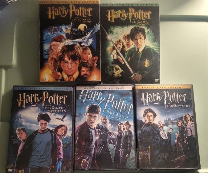 HARRY POTTER 5-Part Classic Movie Collection 1. Harry Potter: Sorcerer's Stone 2. Harry Potter: Chamber of Secrets 3. Harry Potter: Prisoner of Azkaban 4. Harry Potter: Goblet of Fire 6. Harry Potter: Half-Blood Prince *ALL DVDs work perfectly fine. NO scratches, dents, or issues.