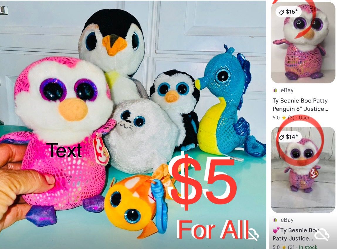 $5 For All Bundle of TY Beanie Boos a total of 6 in good condition 1 with tag
