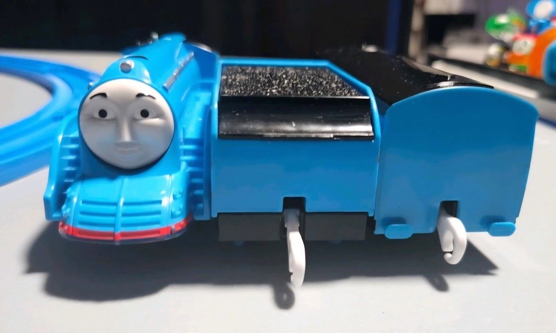 Takara TOMY Plarail Shooting Star Gordon W/ Tender & Express Coach 2017 TOMY Thailand Gullane Limited Gordon has two speeds (ON) and (HIGH) The only reason why it seems faster than usual because I swapped the original motor with one from a HiT Toy Company Thomas because for some reason these are faster than average trackmaster engines. So I guess you could say this engine has been modified but in my opinion this engine had a glow up. The Shooting Star Gordon requires 1 AA battery (included)