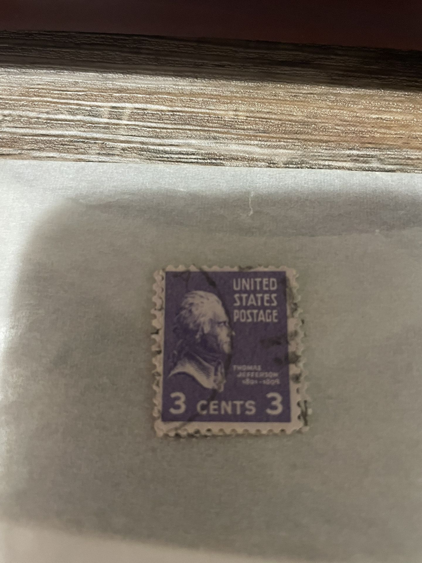 Vintage Super Rare 1(contact info removed) Violet Thomas Jefferson 3 Cent US Stamp On Sale