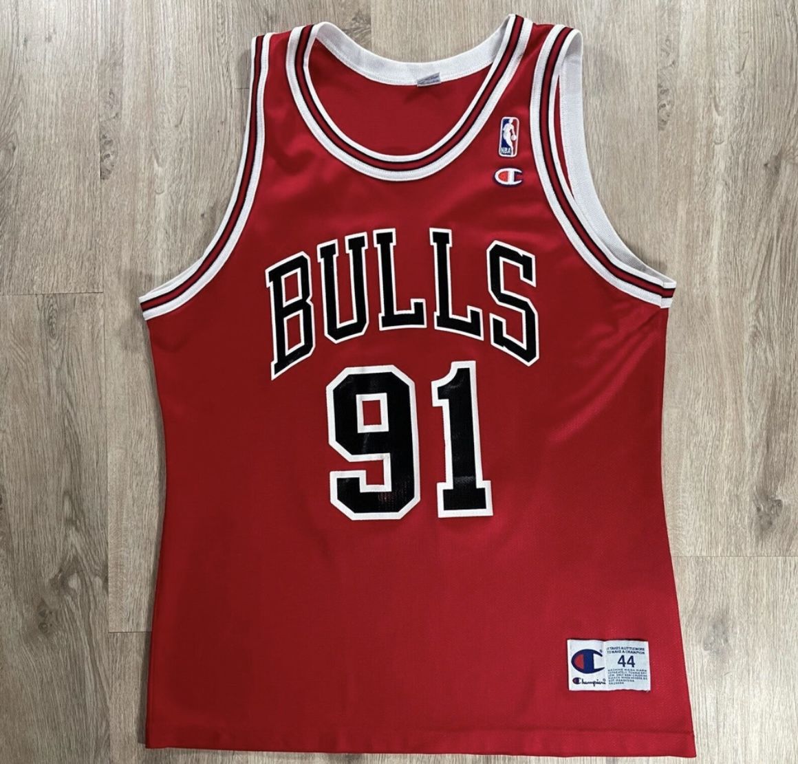 Vintage Champion Jersey for sale .. 90s NBA star Dennis Rodman jersey. Size 44(L) pls see pics for sizing and details. Selling jersey for $75 OBO