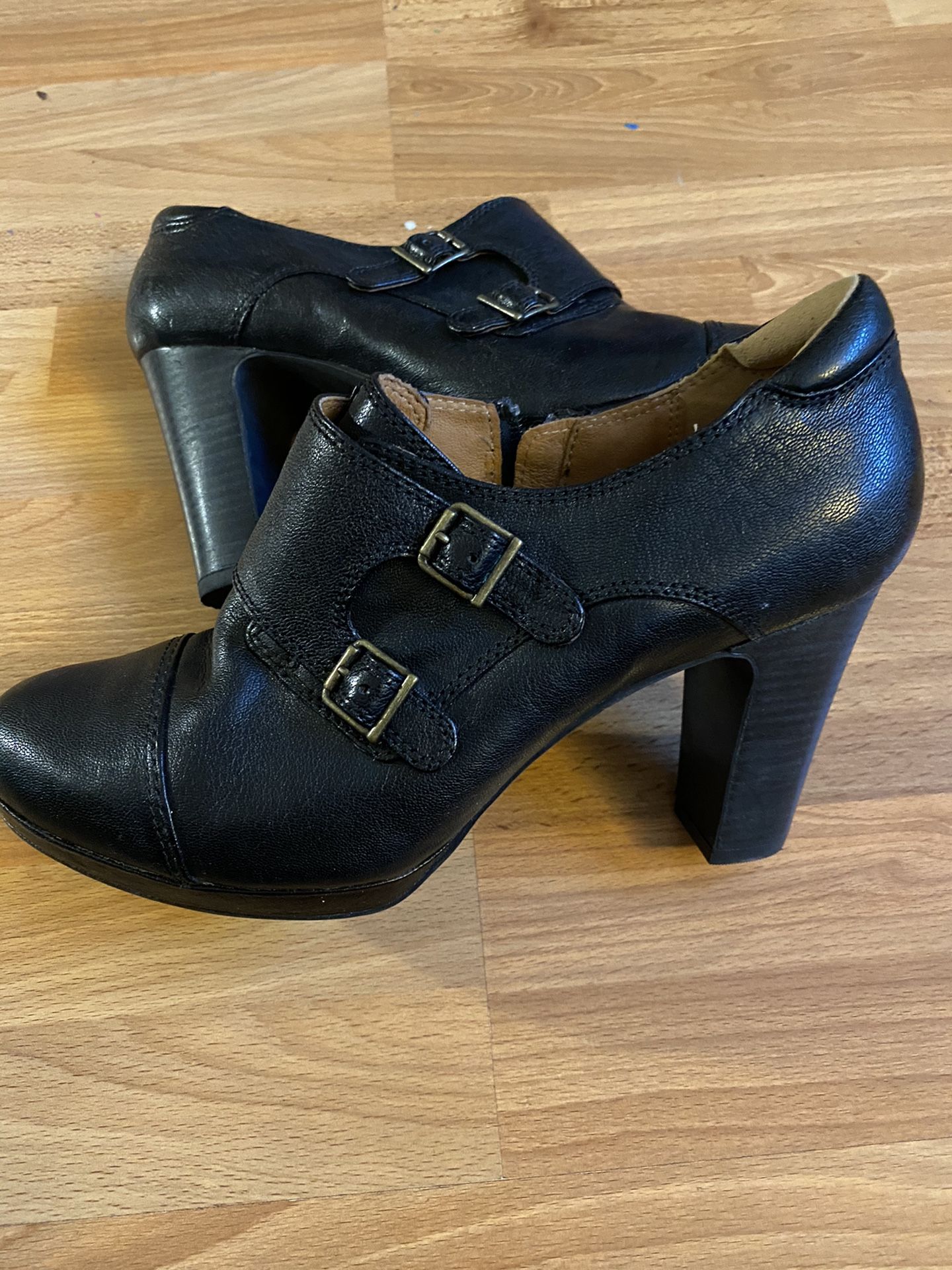 Clarks booties black leather ankle boots Size women’s 10 Great used condition