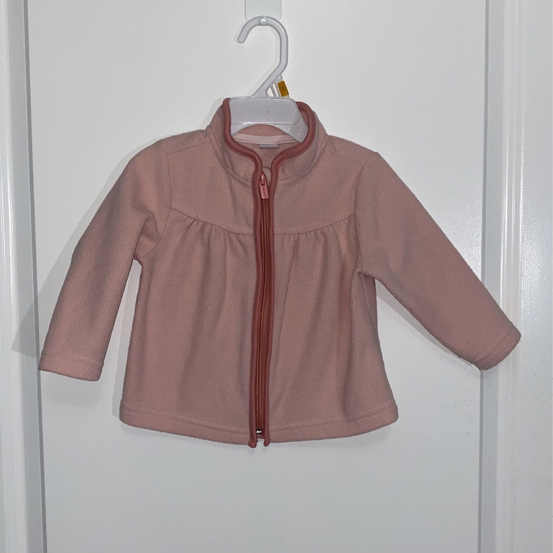 12-18 months but fit my kid at 24 months. Cute warm fleece sweater. Old navy. Good condition.