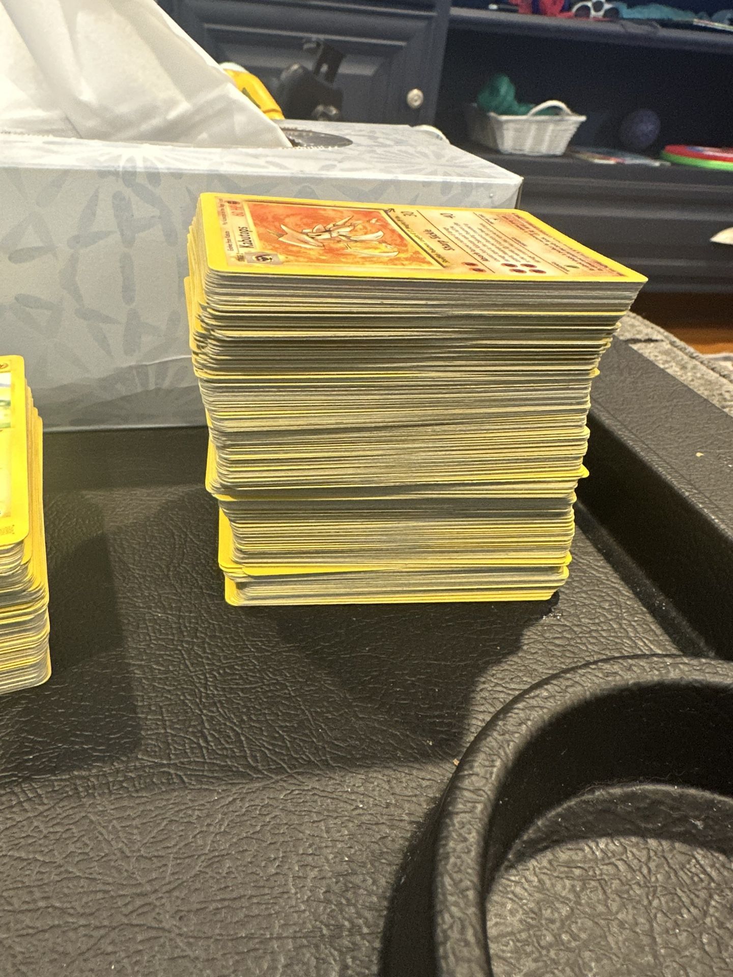 Stack of first edition Pokémon cards and a few pikachu I don’t know anything about Pokémon. I just know they’re old so shoot me an offer $100 OBO