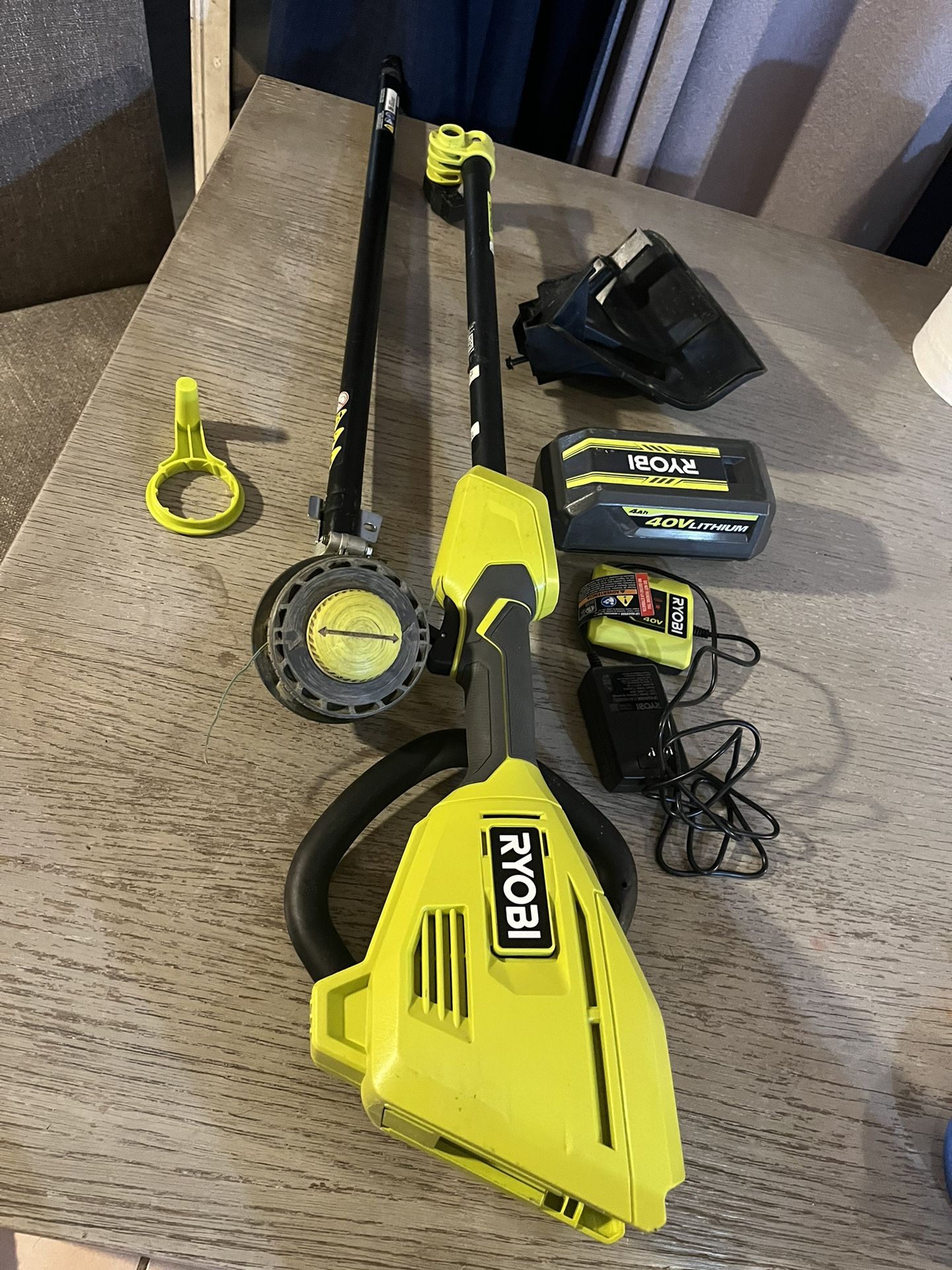 RYOBI 40V 15 in. Expand-It Cordless Battery Attachment Capable String Trimmer with 4.0 Ah Battery and Charger
