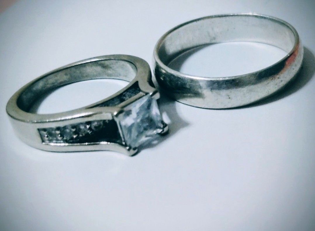 Gorgeous women's CZ & Silver ring size 7 and men's Silver ring size 10.