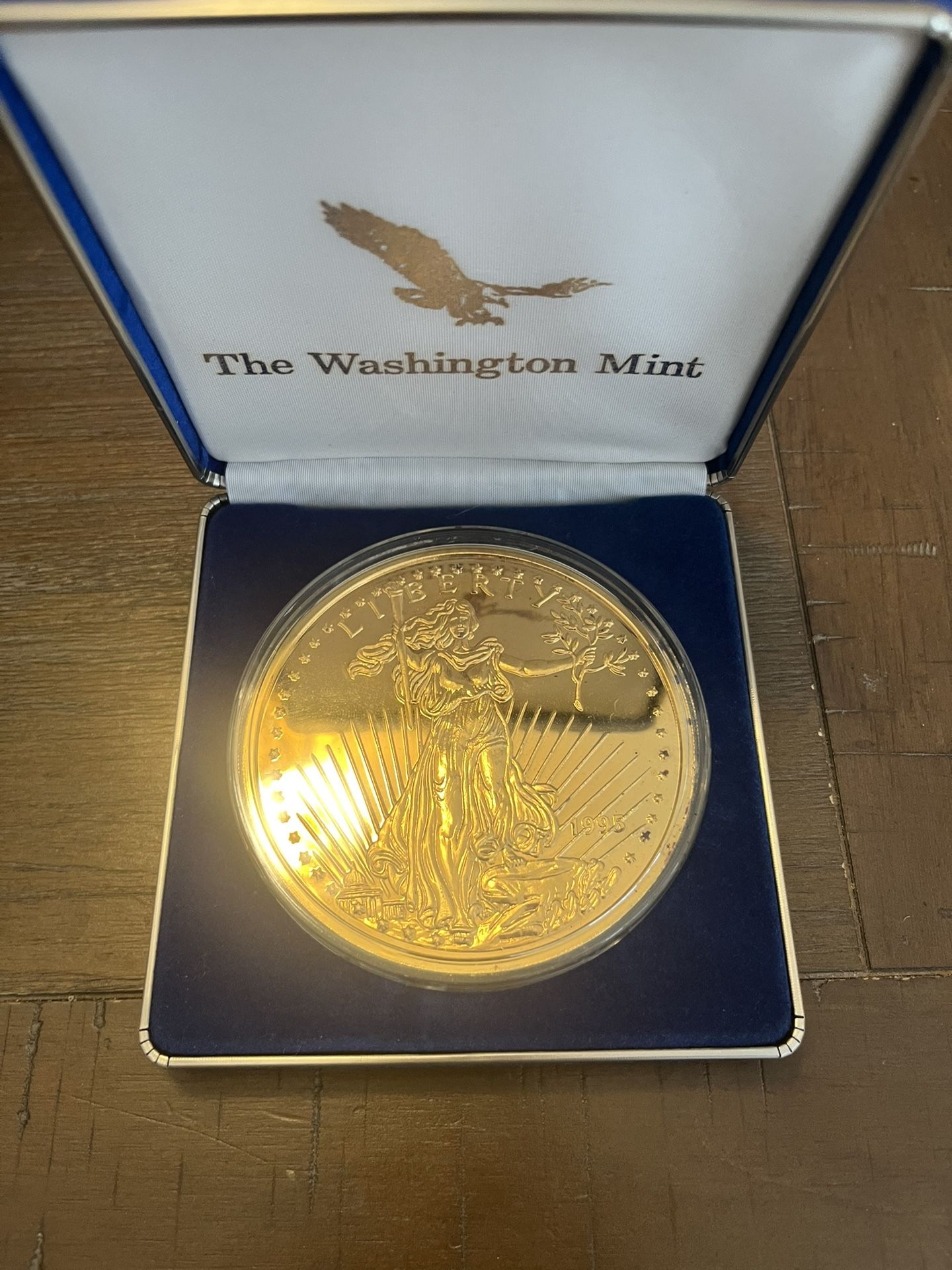 1995 Washington Mint Giant Half Pound 8oz .999 Silver Proof Golden Eagle Comes with clear encasement and blue felt protective box