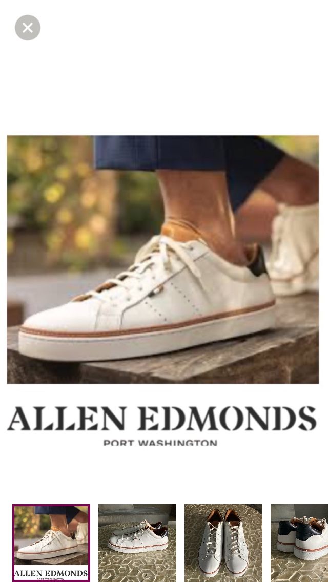 The Allen Edmonds Alpha sneaker is a vintage-inspired style. This lace-up sneaker features a removable, cushioned insole with arch support and shock-absorbing FlyForm inserts. It has a leather upper with leather and textile lining and a rubber sole Lining Material: Leather Material Supple: Leather Origin: Imported Style: Stylish Sneaker With Sporty, Vintage-Inspired Appeal Sole Material: Rubber Closure Lace-Up Style Upper Material Leather Barely worn, in excellent condition & retail at $300. Available in size 10 US men’s. Shade is white.
