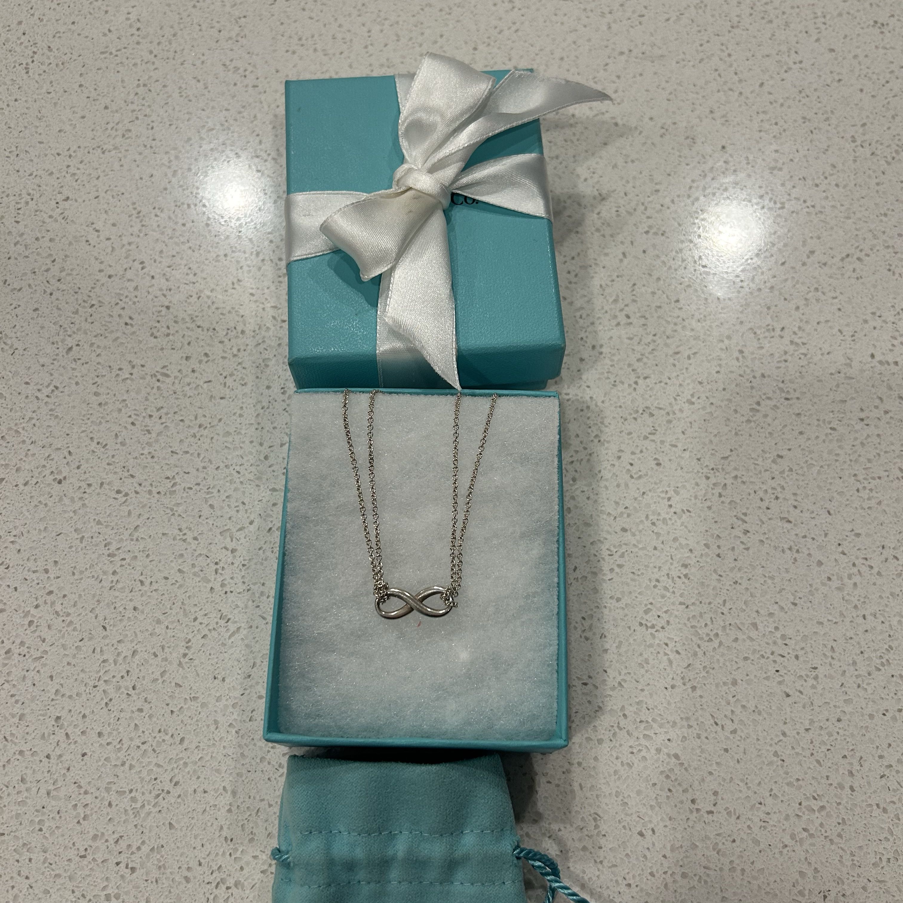 Sterling silver infinity symbol pendant on double chain design. Delicate and contemporary style necklace.original price $375. Selling for $130, includes box, and mesh bag. Worn a couple of times, excellent condition.