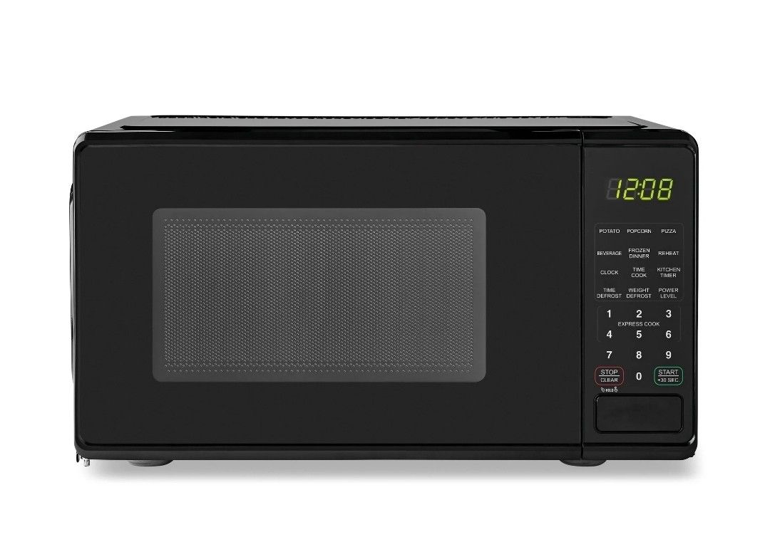 Mainstays 0.7 Cu ft Countertop Microwave Oven. Basically brand new only been used a couple of times. 700 watts. The Microwave is 9.6 inches tall by 17.6 inches wide and 12.7 inches deep. The inside compartment is 6 inches tall and has a glass turntable with a diameter of 9.65 inches.