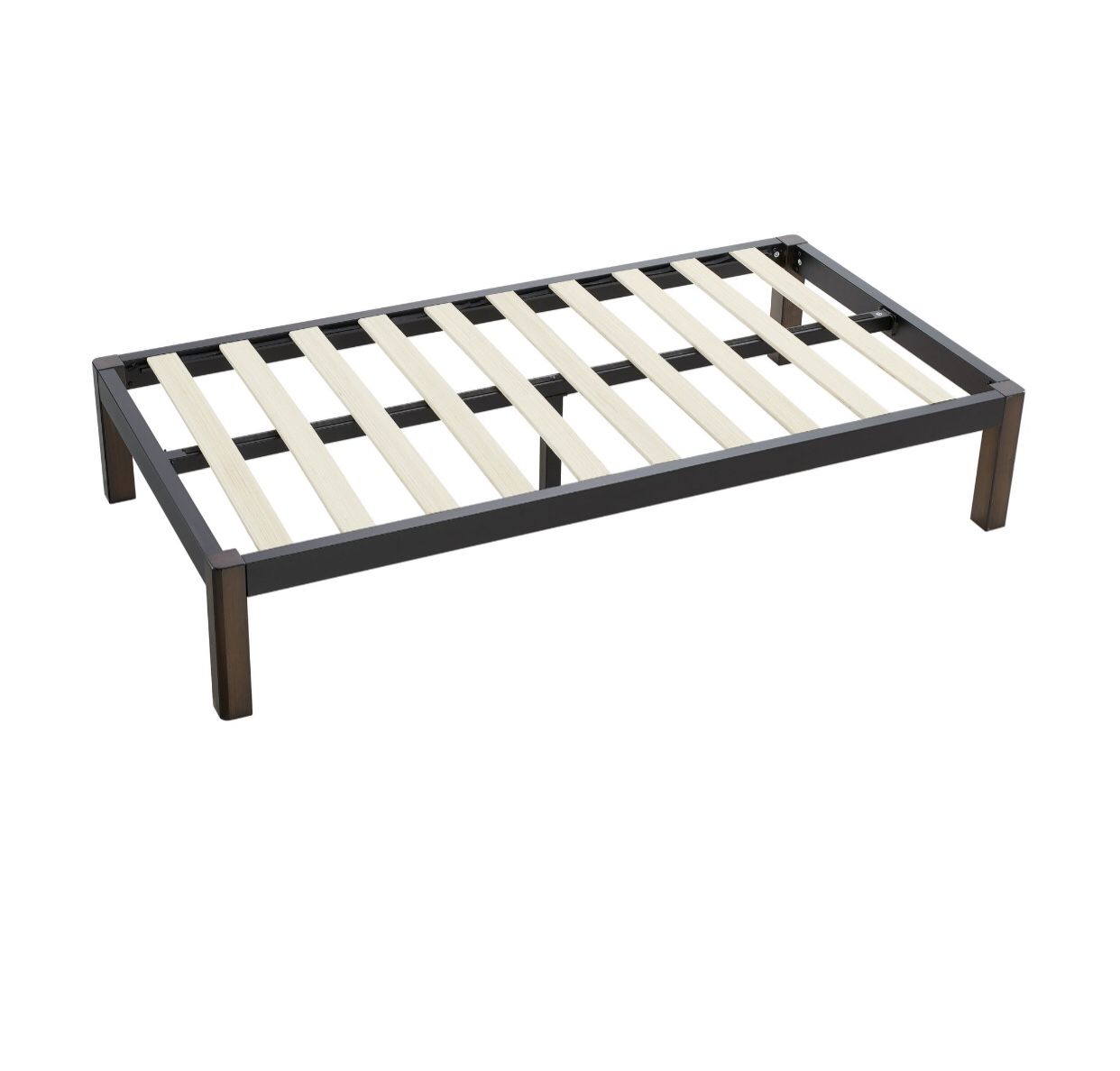New in box twin platform bed. Get it today for $55, compare to $109 on https://offerup.com/redirect/?o=V2FsbWFydC5jb20=. Firm on price. Pick up in North Royalton, Ohio. No delivery. Cross posted, no holds. Cash, Cash App, or Venmo From the manufacturer: Mainstays Wood Slat Black Metal Platform Bed Frame with Wood Legs, Twin Let your bed be a contemporary and cool aesthetic addition to your bedroom when you choose the Mainstays Metal Bed Frame with Wood Legs. Designed with wood legs and easy to attach wood slats, this metal frame features non-welded one-piece tubing for reliable strength and helps you save money on home furnishings by creating a platform for innerspring and memory foam mattresses without a box spring. These slats give your bed fantastic support with a center beam that provides additional support and can help improve mattress life. Round plastic corners prevent accidental damage to you and your home, while the sleek black finish blends in beautifully with any decor. Lifting your bed 14" off the floor and creating storage space underneath, the Mainstays Metal Bed Frame with Wood Legs comes with all the necessary tools for easy assembly in a snap. No Item 673 177