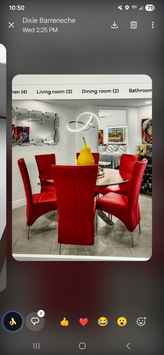 Beautiful glass with chrome round table with beautiful 6 red leather chairs. Almost brand new!