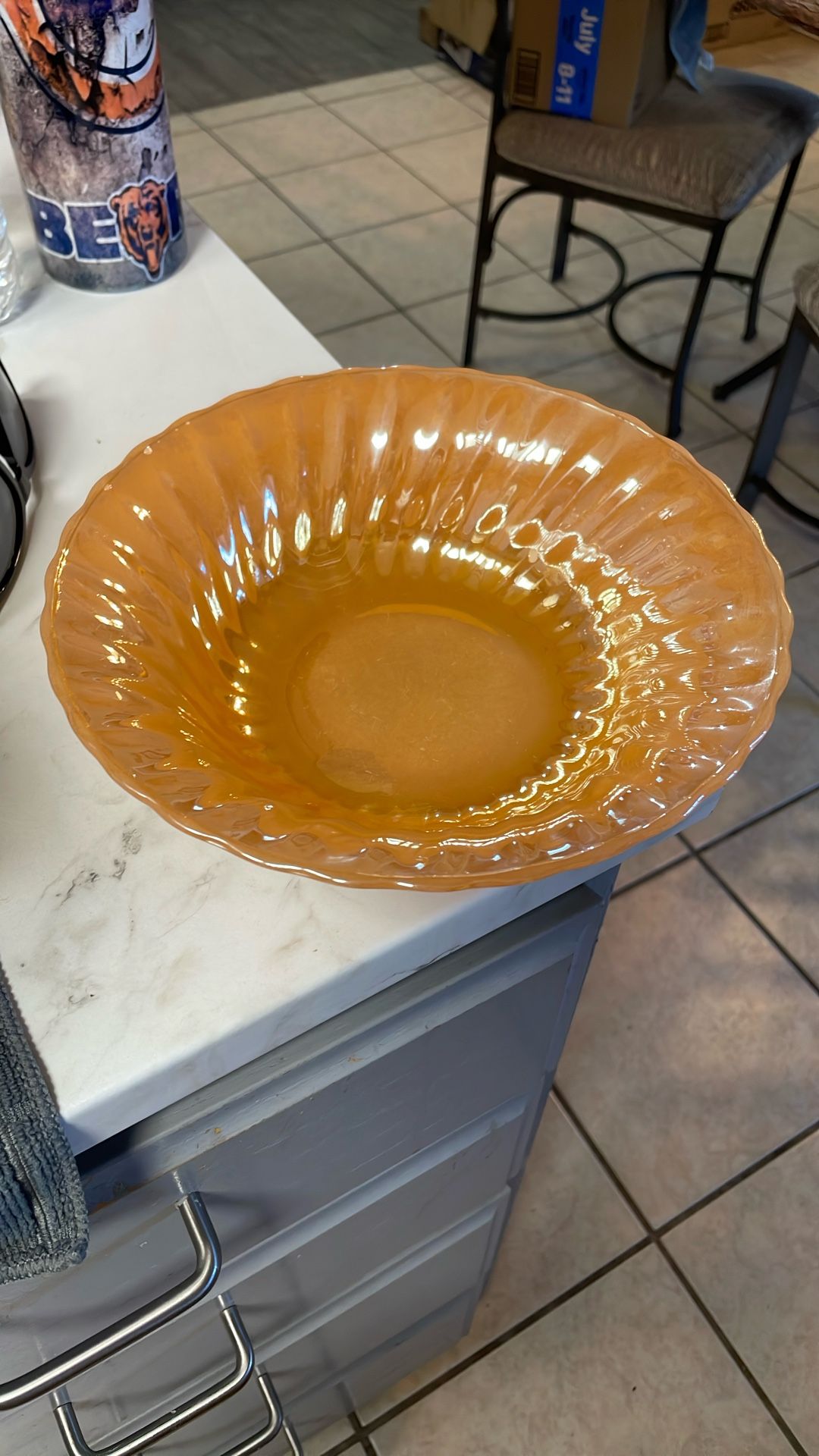 vintage Anchor Hocking Fire King Peach Lustre Swirl Round Vegetable Serving Bowl