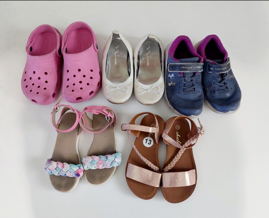 Girls usedshoes $5 all size 1/2Y Under Armour Ballerina Crocks 2 pairs of sandals Zapatos de uso para niñas talla 1/2Y todo $5