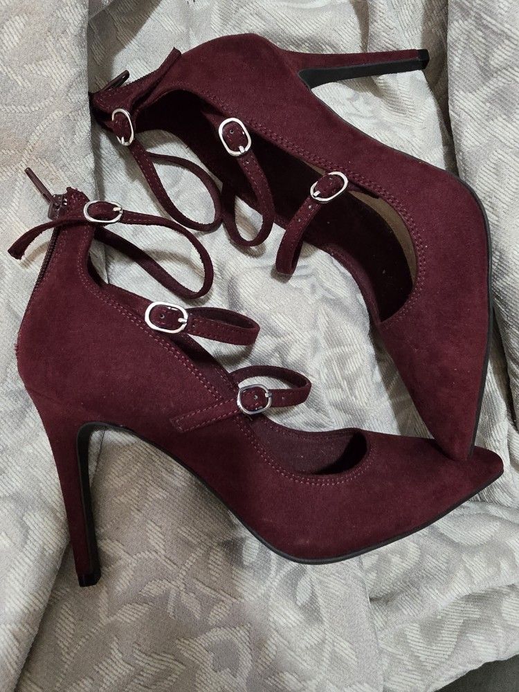 Burgundy suede mid heel pumps #partyshoes Size 7 Women Brand Christian Soriano Brand new