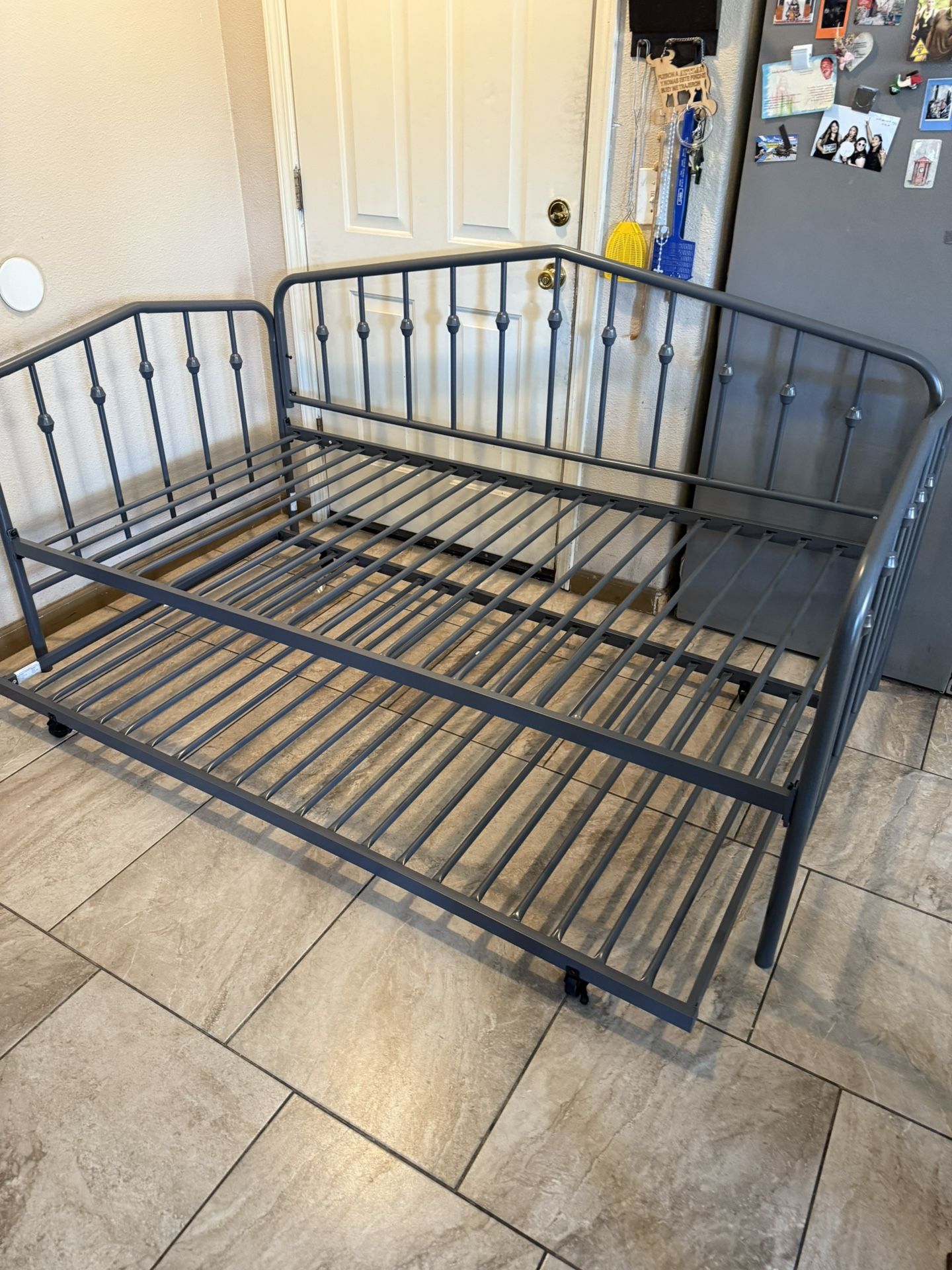 New daybed and trundle frame in gray twin size see pictures for description Sold half assembled Delivery available for10 dollars in Fresno or you can pick up by Kearney and Fresno street