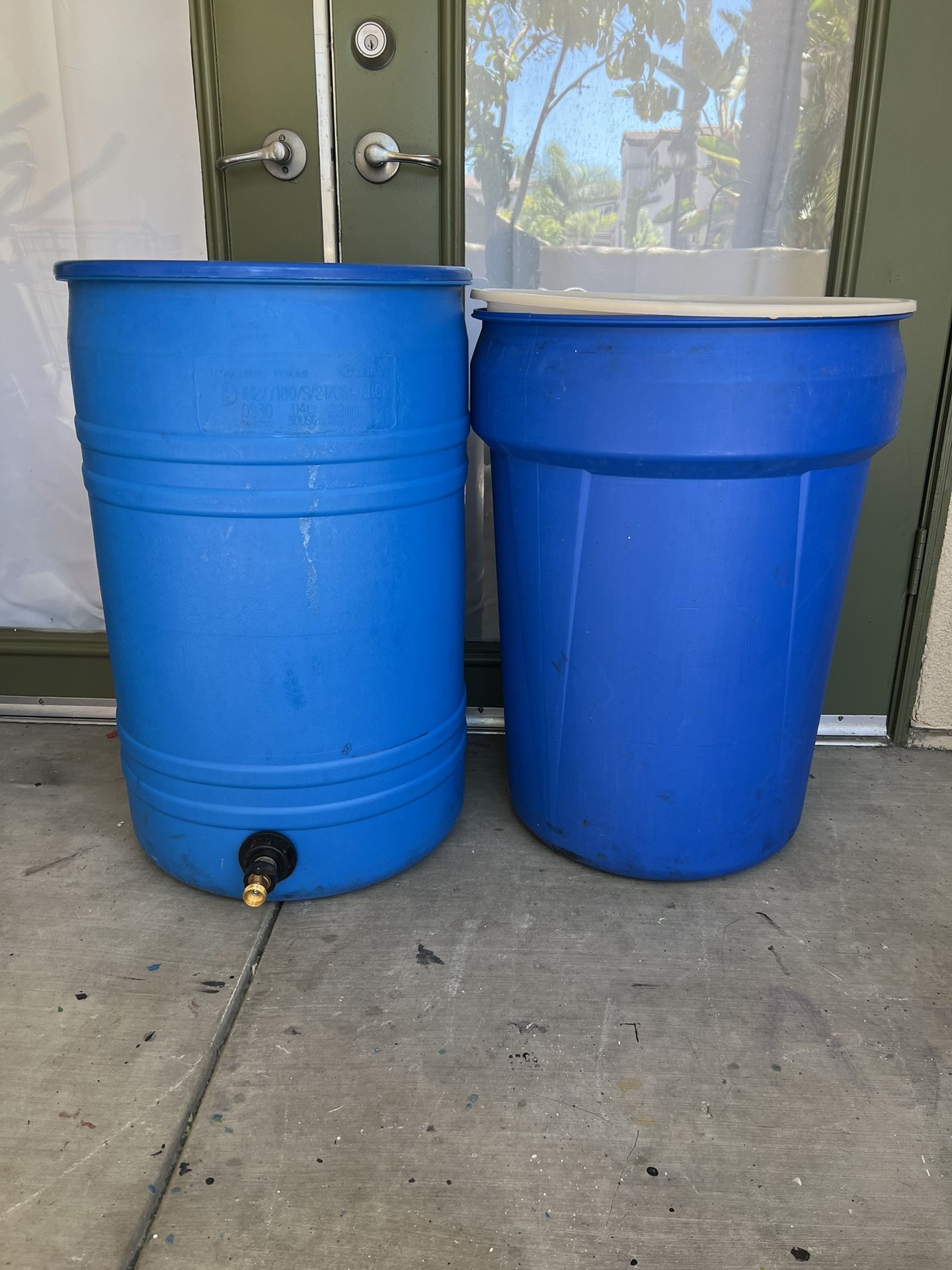I have two 55 gallon plastic drum with lid I would use it for auto detailing they were very helpful I got something bigger so I don’t need them any more. It is $100 each If you buy both it’s $185