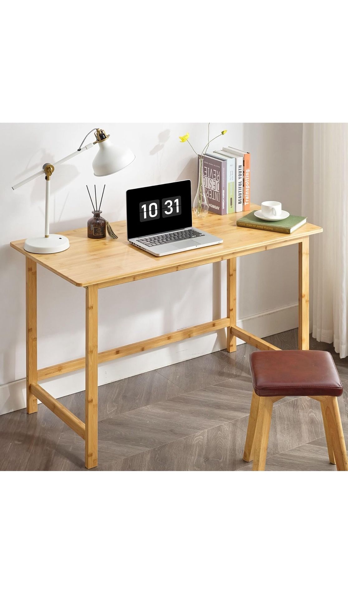 Nnewvante 47 Inch Computer Desk, Bamboo Writing Desk, Modern Simple Work Desk for Home Office. $85 OBO (Normally $160) *Can Assemble and/or Deliver For A Small Fee*