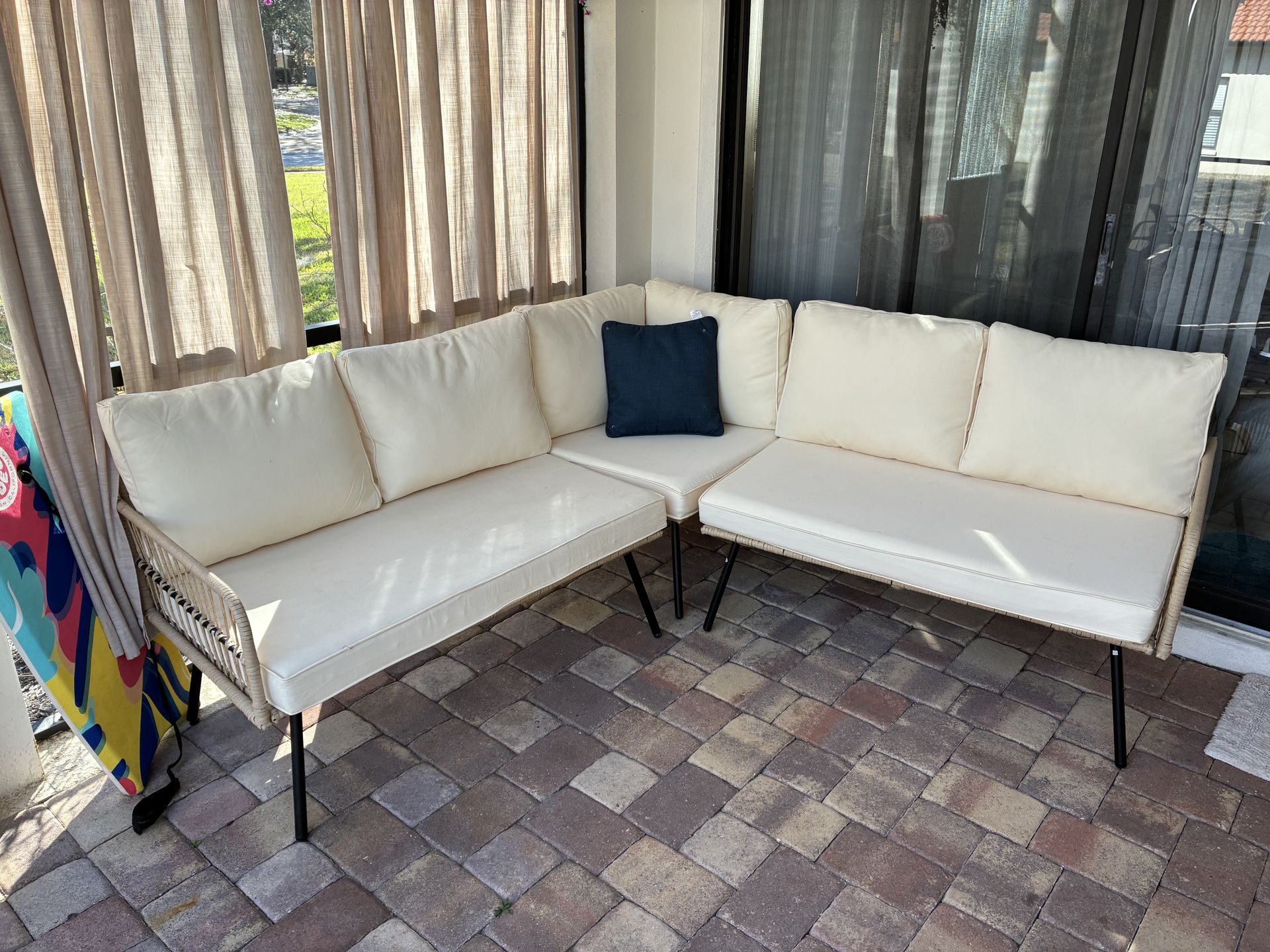 Wicker and Rattan outdoor sectional with coffee table . Used very little. Asking $250 pick up and cash only.