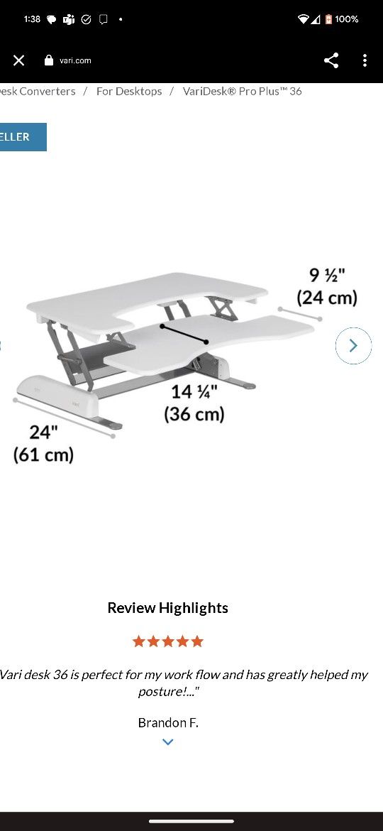 Retails for over $400 Product details: The Varidesk ProPlus 36 is the best standing desk converter we've ever tested. Our best-selling model Delivered fully assembled Two-tier design with lower keyboard deck Weighted base for stability Posture curve and rowing lift 36" wide More info: https://offerup.co/faYXKzQFnY?$deeplink_path=/redirect/