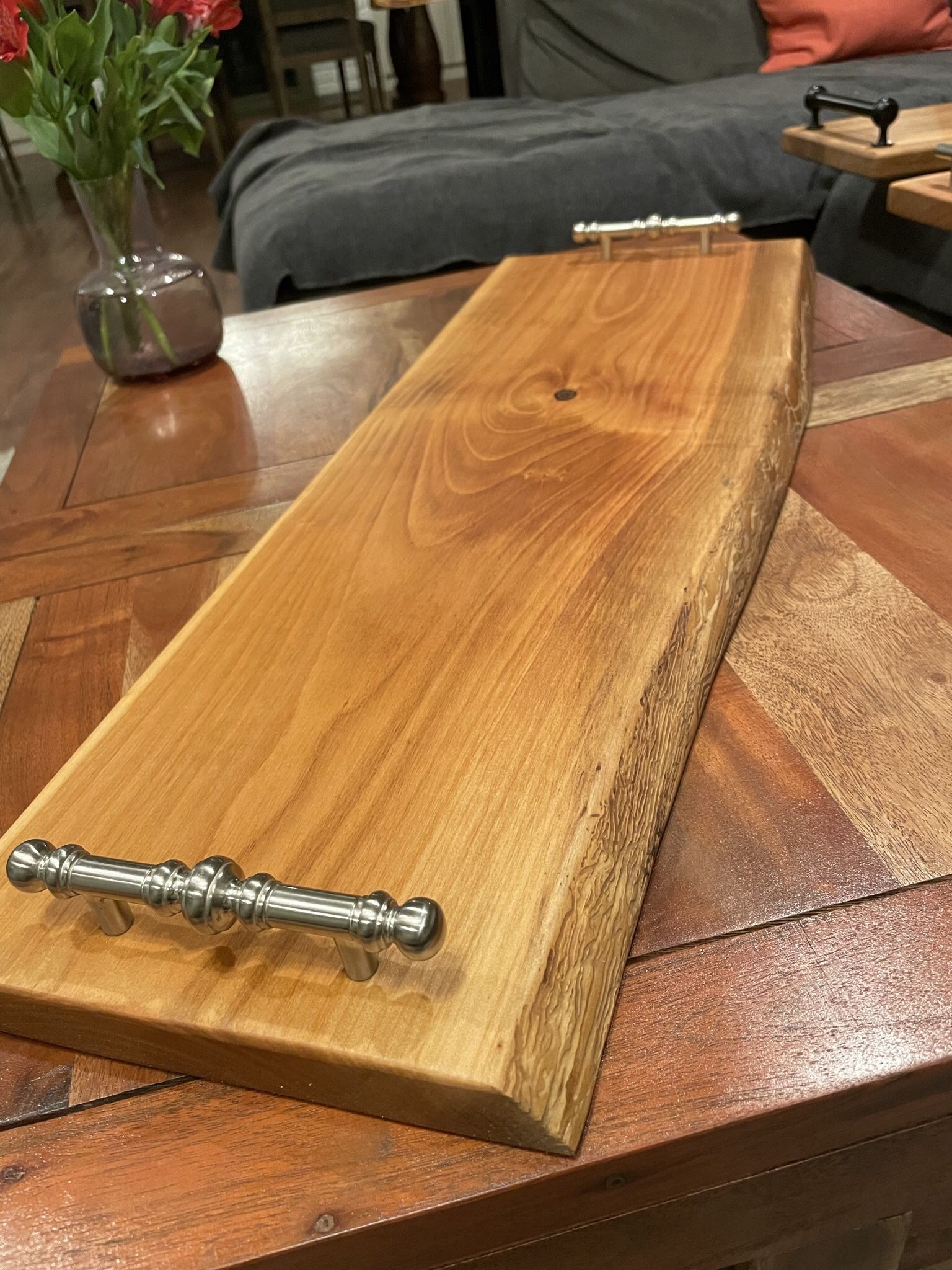 Custom made cherry board 9.5” x 28” Chrome decorative handle