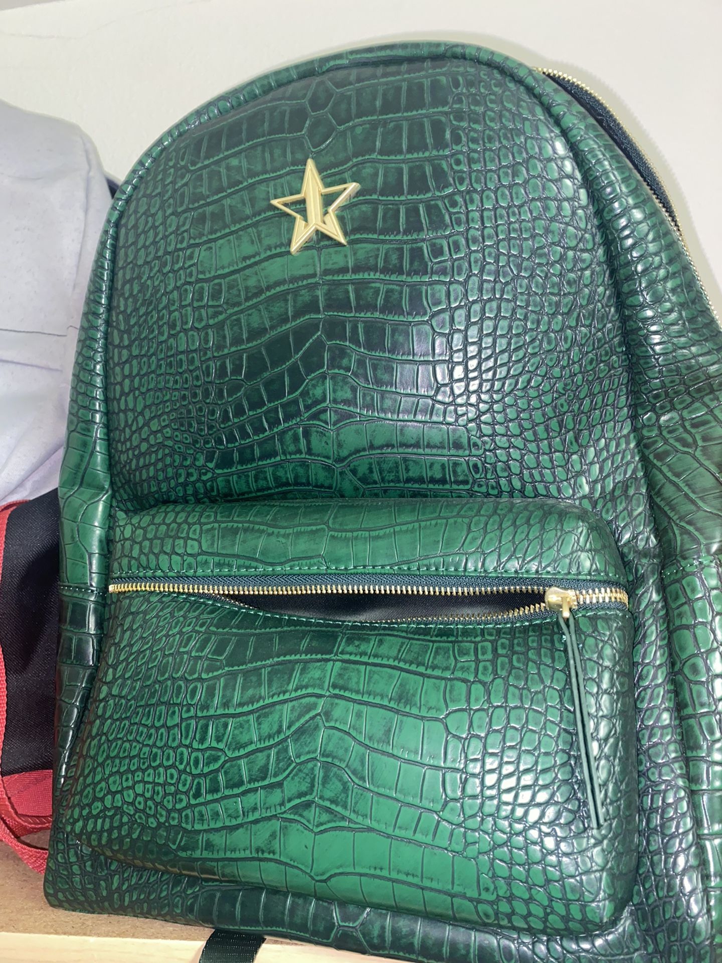 The faux crocodile bag in green brand new I used it one to try on.