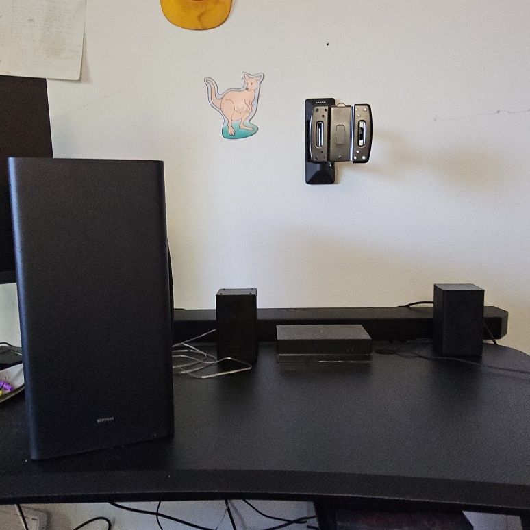 Sound Quality is great. No problems with it I just have no room in house and everyone complains how loud and shaking the house it is.