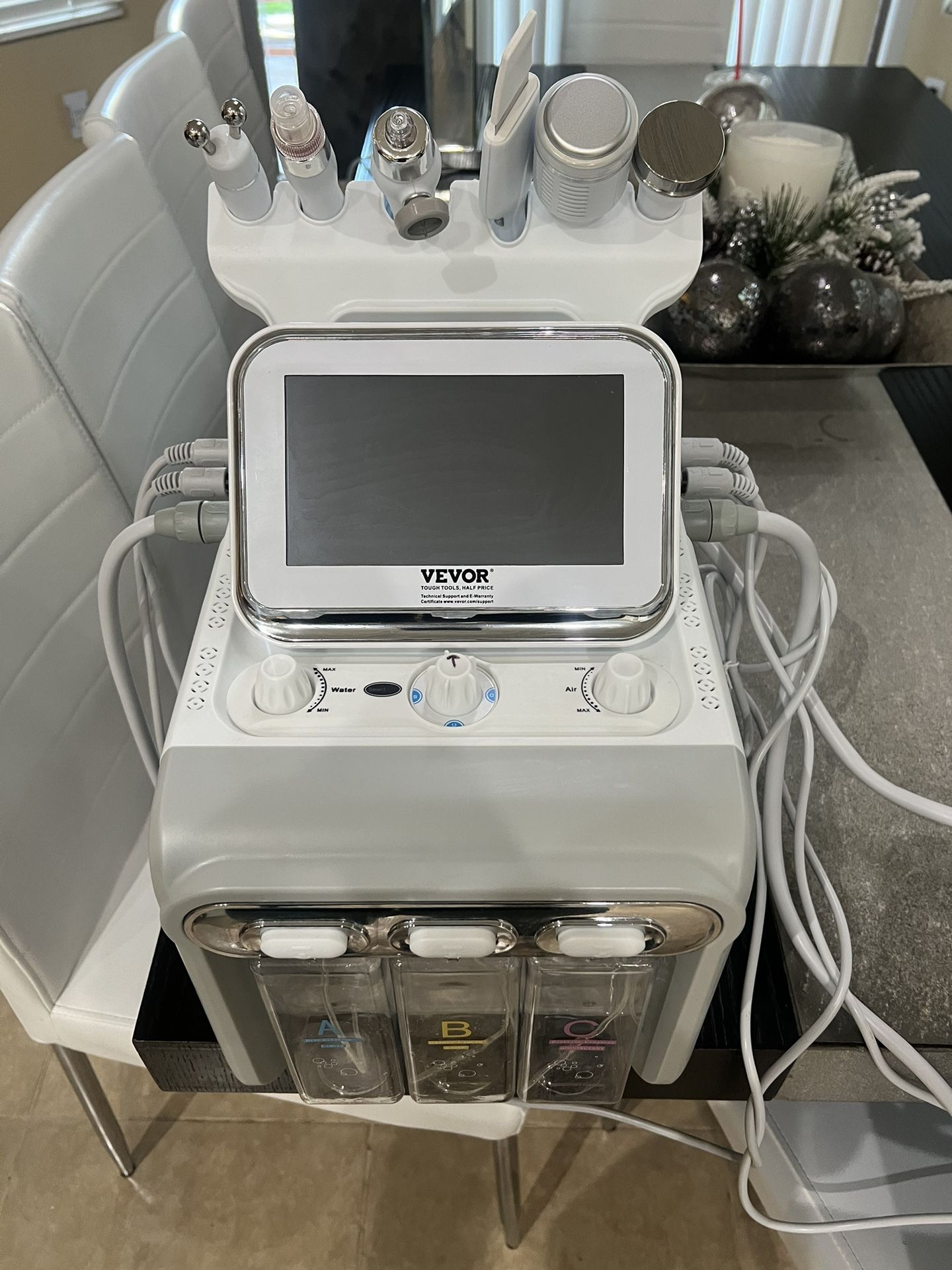 Professional hydro facial machine, gently used, with multiple treatment heads for deep cleansing, hydration, lifting, and glow-boosting results.
