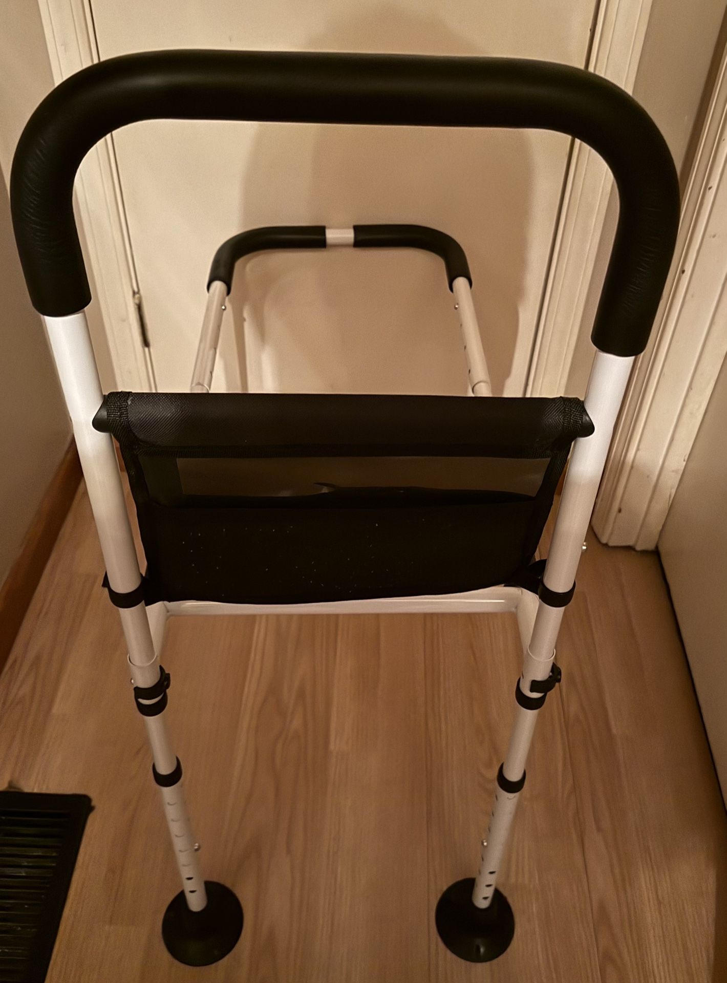 Compatible with all bed types and sizes - Adjustable length and width options - Pocket with storage, great for remotes! - Slightly used Great item for elderly or the disabled! Helps getting out of bed easier with more support and stability with something sturdy to hold onto. Also helps keep mattress in place and sliding past the frame.