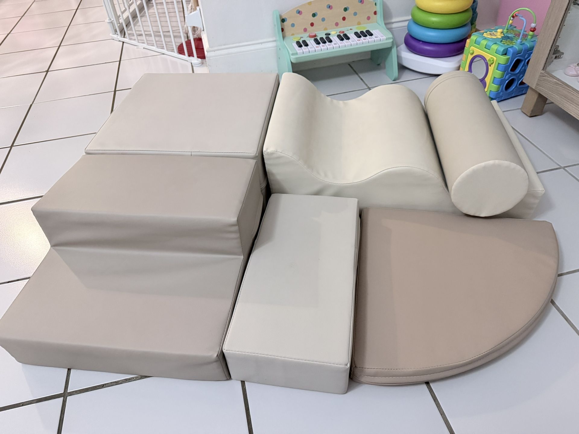 Well loved but has plenty of life left. My child found a marker lying around and colored on some pieces. Most of the staining came out but as you can see in photos some still remains hence the low price.