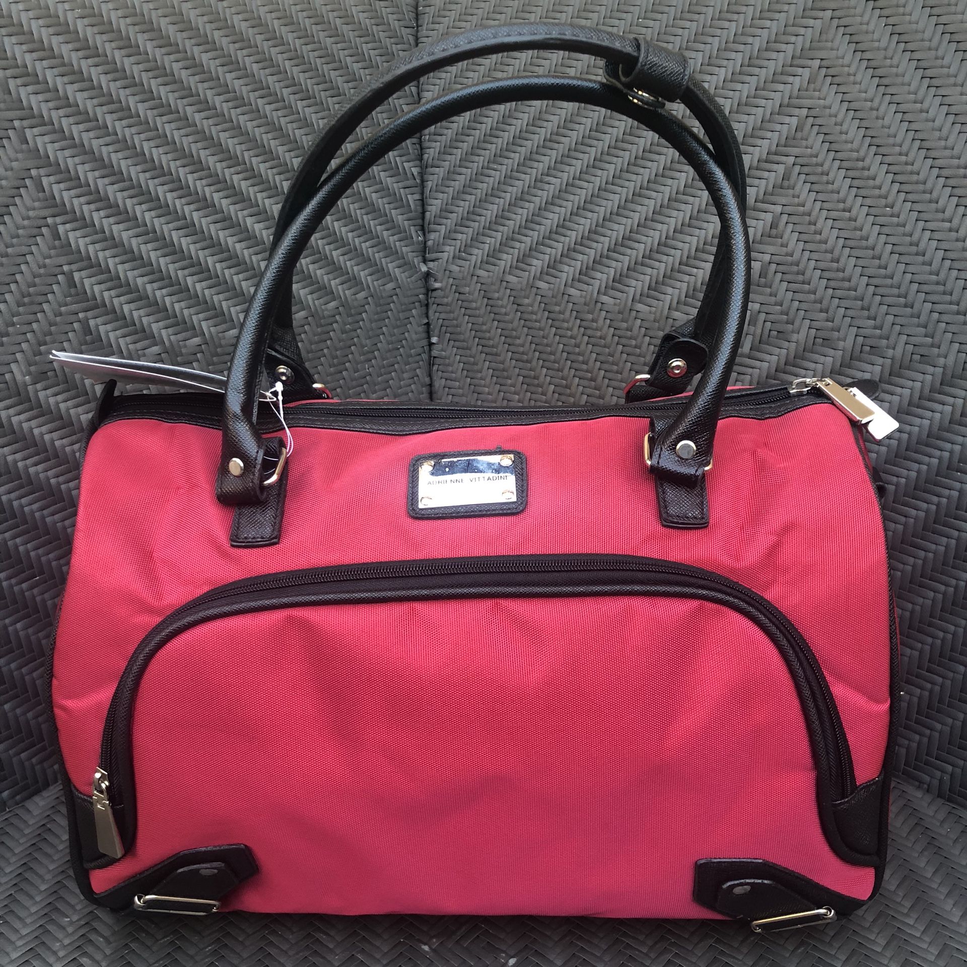New Adrienne Vitadini 18” duffle bag with adjustable removable strap. Interior: - Fully lined interiors - large main compartment Exterior: - 1200D high density nylon fabrication - EVA foam front panel zipper pockets - push button locking handle system for easy maneuverability Retail: $250
