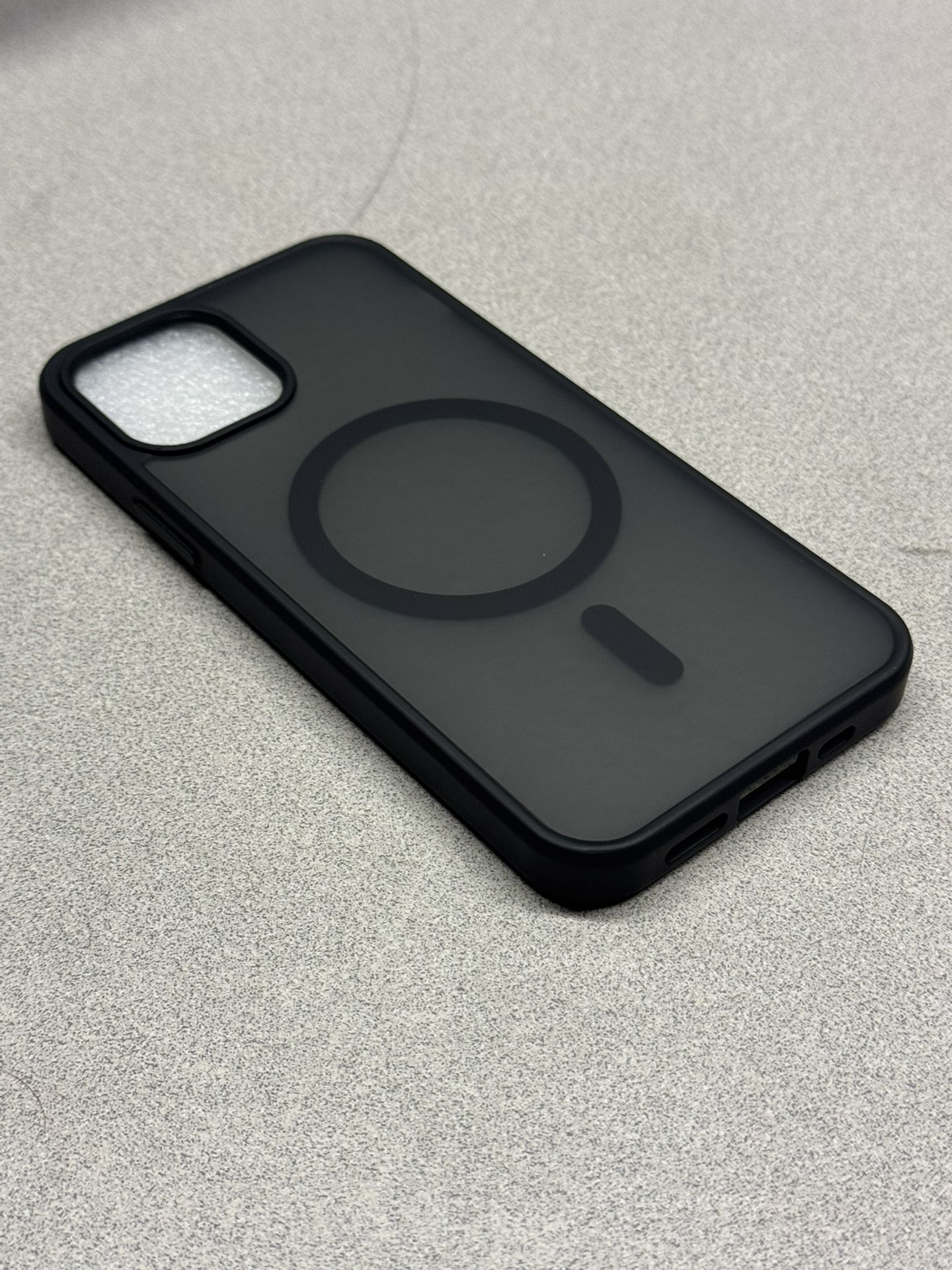 Protect your phone with this new, unused iPhone 12 magnetic case in a sleek black finish. Details: • Compatible with: iPhone 12 • Color: Black (semi-transparent back) • Magnetic ring built-in (MagSafe-style compatible) • Slim, lightweight design • Raised edges for screen and camera protection • Precise cutouts for ports and buttons Condition: • Brand new and unused • Includes original packaging This case offers a clean, modern look while maintaining protection and wireless charging compatibility. Ships fast and securely.