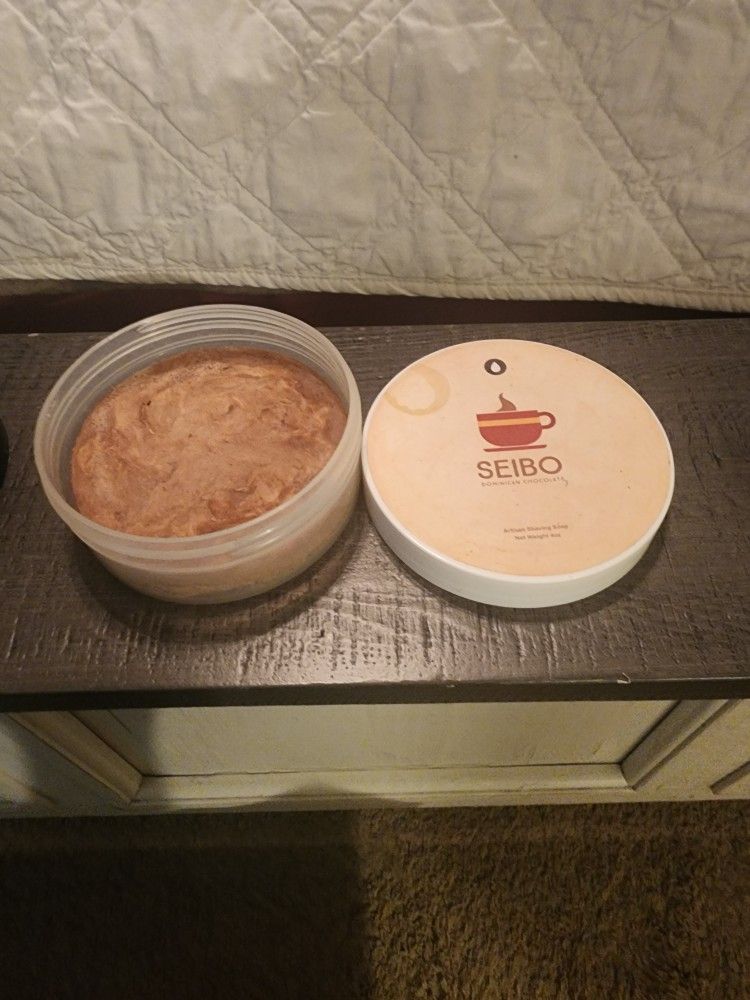 Item has light usage.smells like milk chocolate when lathered, great lather forming qualities. [Dominican chocolate] scent