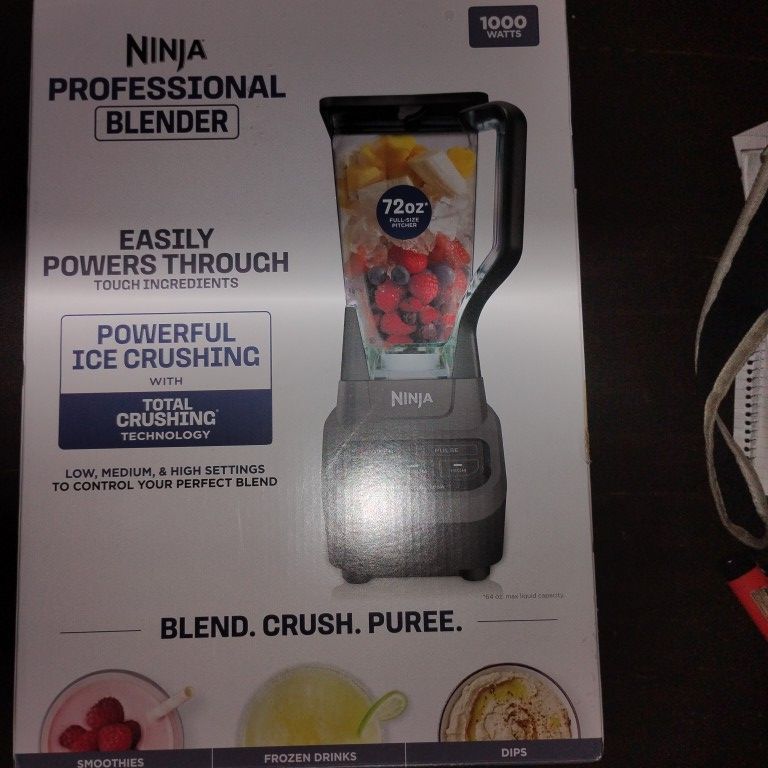 Upgrade your kitchen with this brand-new Ninja Professional 1000-Watt Blender, straight from Kohl’s (authentic & verified). This powerhouse machine crushes ice, blends frozen fruit, and pulverizes anything you throw at it thanks to its professional-grade motor and durable blade system. The heavy-duty build and large blending pitcher make it ideal for families, meal prep, and daily smoothie lovers. Whether you’re making protein shakes, frozen cocktails, soups, or sauces, this blender delivers smooth, consistent results every time. IN STOCK NOW (5) — no waiting, no backorders BRAND NEW SEALED CAN OPEN IF YOUR 100% PURCHASING AND NEED TO ENSURE IT'S ALL THERE True to my word brand new factory sealed 🤝