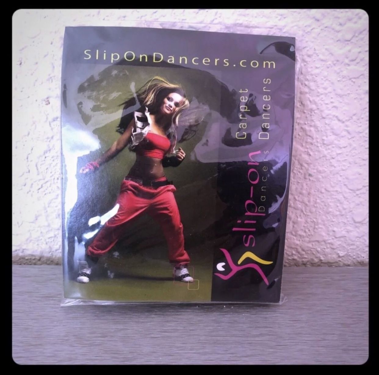 NWT in pink, blue and yellow polka dot print Also available in Red, orange zebra, black and white zebra, leopard, blue, black and polka dot. Please specify color, or advertised print will be sent. :) Carpet Dancers TM fit over the tennis shoes you already own and allow your hips to move more freely when performing physical activities such as dancing exercise. Designed to cover the ball of the foot on regular sneakers that grip the floor, Carpet DancersTM allow your feet to pivot and twist with ease as if you had on expensive dance shoes. One size. Great for yoga Pilates Zumba and dance. Add to your work out routine