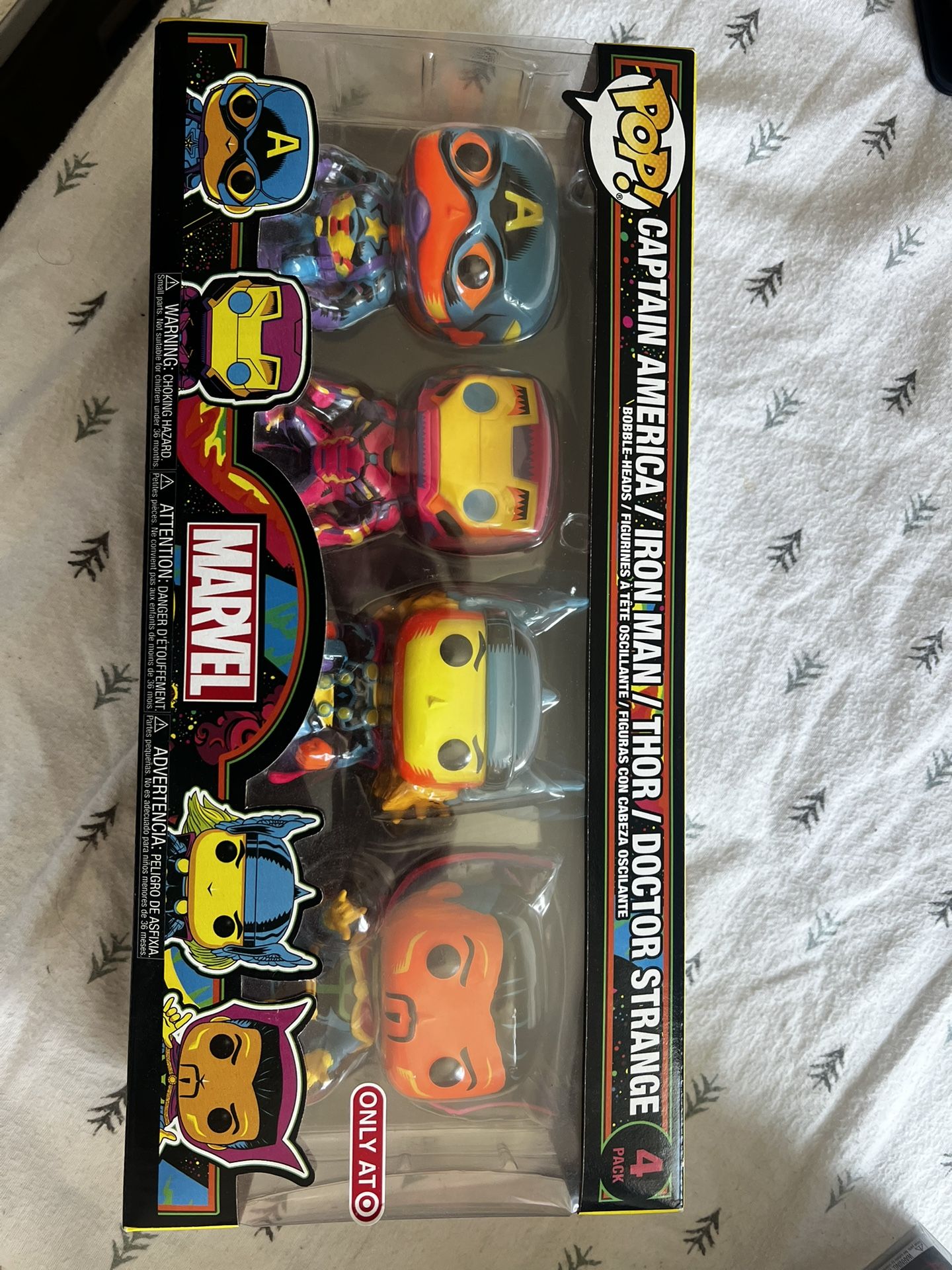 Marvel Blacklight 4 pack Captain America, Iron Man, Thor, Doctor Strange funko